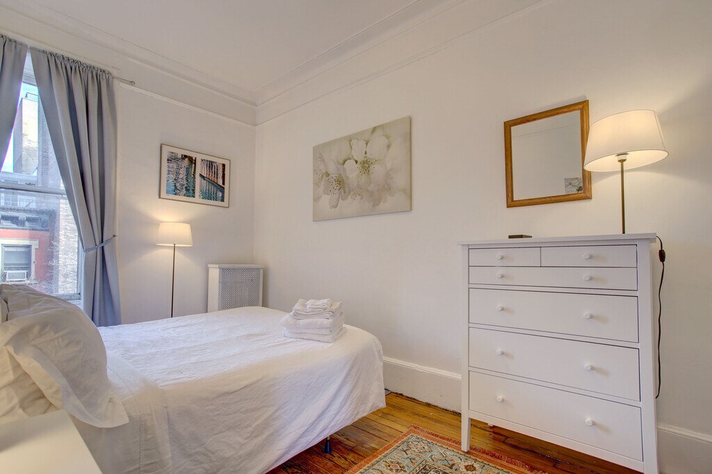 Nuestros apartamentos se encuentran en West 82nd Street entre Columbus y Central Park West, a una cuadra del Museo de Historia Natural, a un minuto a pie de Central Park y a una cuadra del metro (líneas A/B/C/D y 1/2/3). Los apartamentos se renuevan y actualizan regularmente. Todos los apartamentos son privados: usted obtiene todo el apartamento. El dormitorio cuenta con una cama Queen (la cama 4R tiene una mesa de noche completa), reloj despertador y cómoda. Hay un sofá que se pliega hasta convertirse en una cama tamaño queen muy cómoda, mesas auxiliares y un armario grande. 1F, 1R y 3R tienen escritorios. 1R, 3R y 4R tienen una mesa para 4 personas. 5F tiene una mesa para dos personas. Todas cuentan con un baño completo con bañera y una cocina totalmente equipada con horno, refrigerador, tostadora de microondas y cafetera. Hay platos, tazas, cubiertos, equipos básicos de cocina y suministros básicos de alimentos. Los apartamentos cuentan con televisión por cable digital, estéreo con sonido envolvente, acceso inalámbrico a Internet de alta velocidad, aire acondicionado, plancha y tabla de planchar, y secador de cabello. Los apartamentos NO FUMAN. Se ofrecen ropa de cama (sábanas de 350 hilos), sábanas y toallas. Fácil acceso a la Universidad de Columbia, el Lincoln Center, el Museo de Historia Natural, los teatros de Broadway, Midtown y el distrito financiero. El alquiler incluye calor, agua y agua caliente. El gas eléctrico y de cocina es a su costo, prorrateado y deducido del depósito. El cable/Internet cuesta $2.50 por día, deducido del depósito. El depósito es de un mes de alquiler. Los hospedajes de menos de 90 días son en el alquiler más alto indicado.