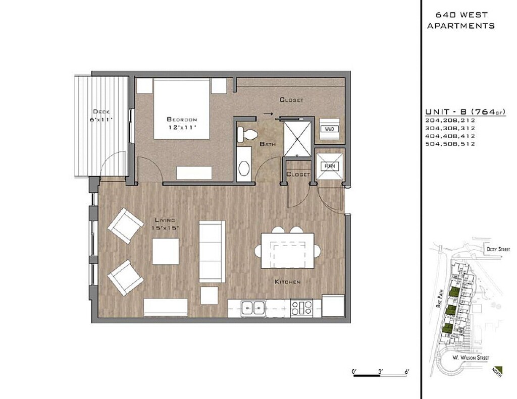 640 West Apartments are ideally located in the heart of downtown Madison. Adjacent to the bike path and just a short walk to the Capitol Square and State Street this property offers connectivity to the best Madison has to offer. Constructed in 2013 these distinctive urban apartments feature exceptional design and modern finishes.