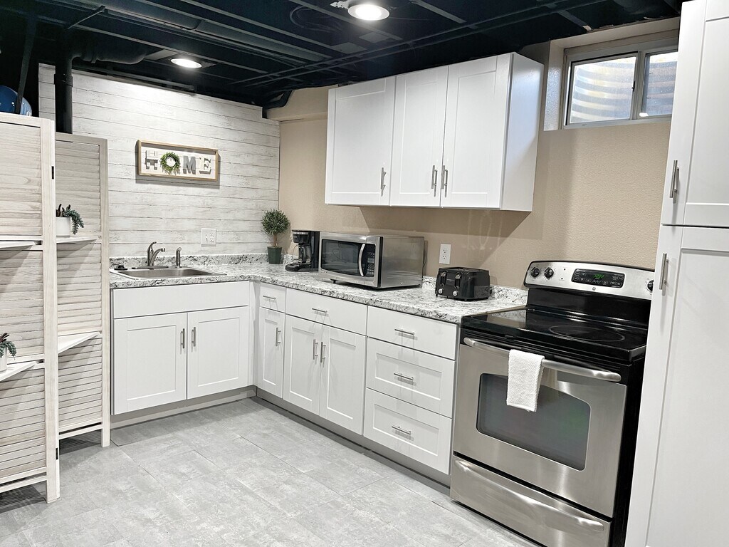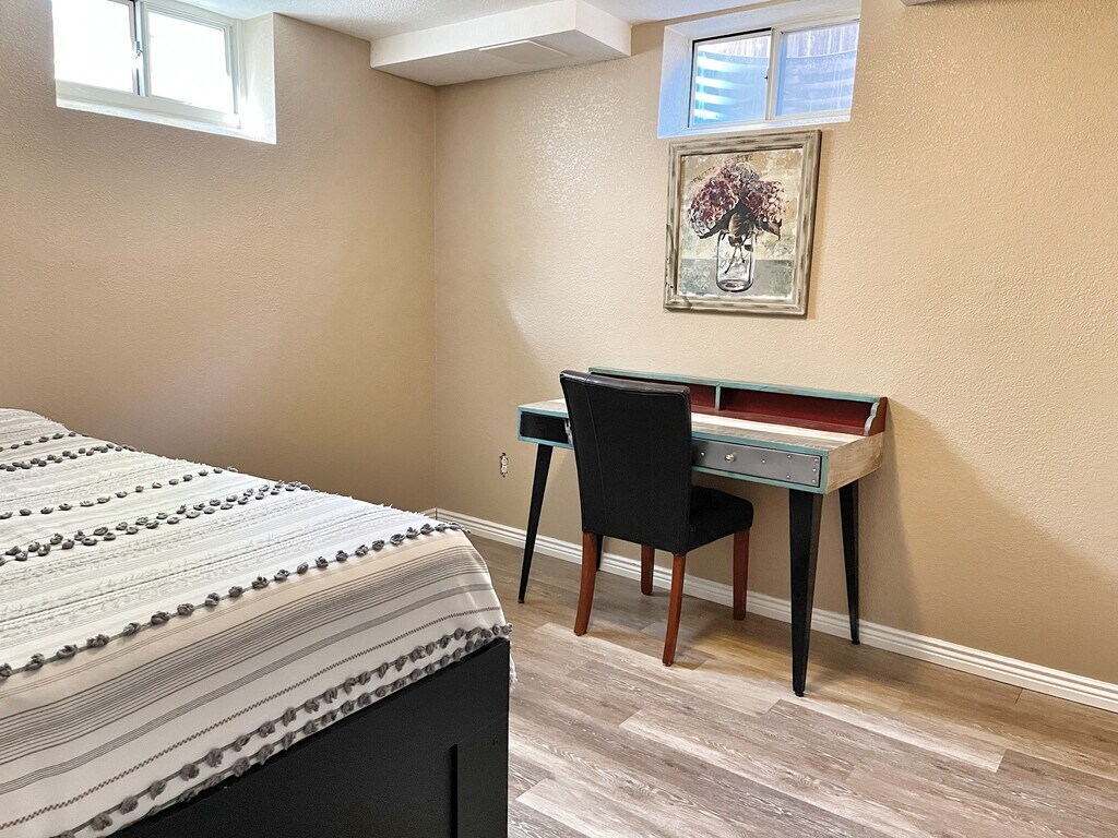 A cozy and private 2 bedroom, 1 bath basement apartment located just north of Olde Town Arvada. Fully FURNISHED, utilities INCLUDED and backyard access. The unit includes one parking spot in the driveway, private entrance, and washer and dryer in unit. One bedroom has a queen side bed with dresser, chair and closet. The second bedroom has a twin size bed that can convert to a queen if desired; second room also includes a dresser, closet and desk. Fully stocked kitchen for all your cooking needs including a full size stove and oven with a refrigerator. Large storage room and shelving in laundry room. Central AC and heating . Beautiful backyard with patio table. Will accept dogs less 30 lbs with a $50/month pet fee. The above unit (owner) has a small and older dog, so dogs must get along with other dogs. Unit will be available mid OCTOBER. Please feel free to message me with questions or interest in seeing the property. Thank you!!