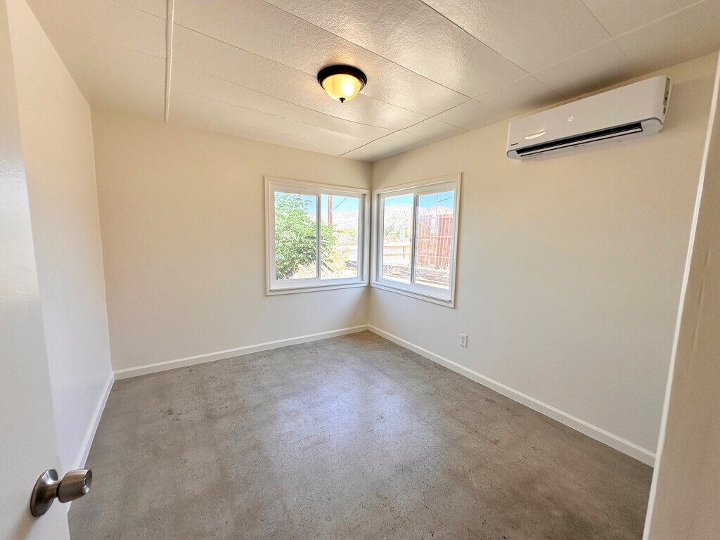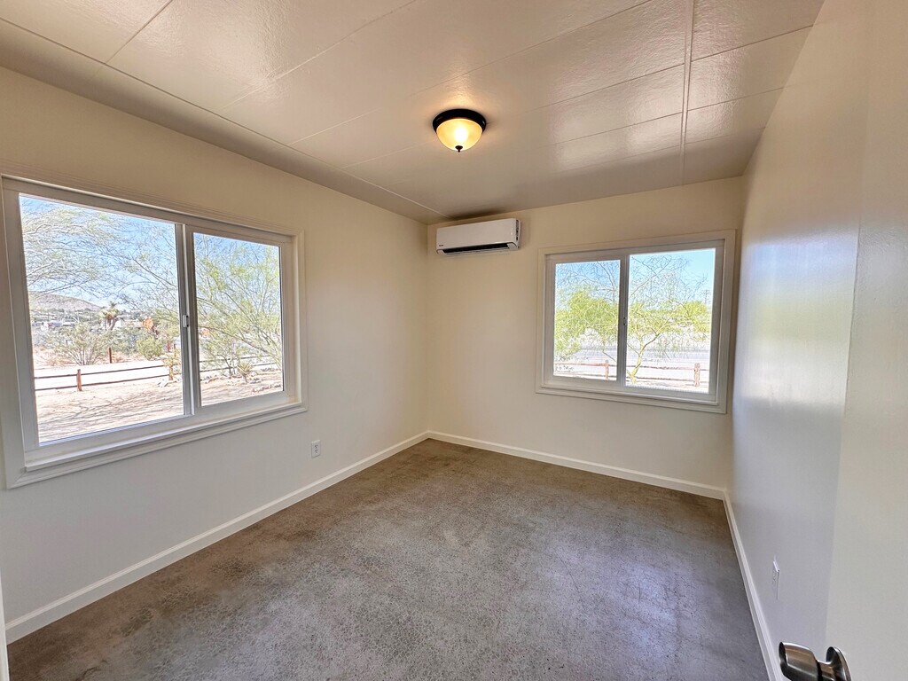 Duplex for Rent in Joshua Tree Remodeled & Ready to Move In! $1,400 a month, 12 month lease (negotiable), $2,000 deposit* (Based on lease term signed*) Pet Negotiable. Freshly remodeled & professionally repainted Brand new mini-splits A/C & heating units one in each room Polished concrete flooring sealed throughout durable & modern Stylish tiled shower / tub Brand new oven with built-in broiler Washer & dryer hookups Large, private lot with mature trees & desert landscaping ONLY 5-10 minutes to Joshua Tree National Park West Entrance. Centrally located downtown, south of Hwy 62; a short walk to shops, restaurants, galleries & local art scene, easy commute access. Lease Terms 12 Months, Deposit and First month due at signing. Renter pays for water, electric and gas. No smoking allowed. Pet Negotiable. No subletting. All tenants over the age of 18 years must submit an application and be subject to a background and credit check prior to approval.