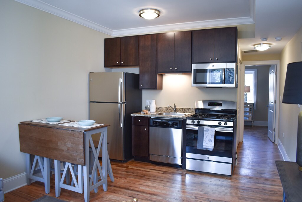 Se dice que no puedes tener el pan y la torta. No estamos de acuerdo. Hemos renovado el edificio de Rogers Park en 6616 N. Glenwood para que puedas tener el pan y la torta en tu nuevo apartamento. Si las comodidades son el glaseado de la torta, entonces este edificio de apartamentos está glaseado al máximo. La lavandería convenientemente libera tu tiempo para explorar todo lo que sucede en tu vecindario. Un nuevo bar cervecero, tienda de malvaviscos gourmet y la tienda abierta hasta medianoche de mac & cheese hacen un trío de deliciosas adiciones al vecindario. Los pisos de madera noble, gabinetes color espresso y cálidas paredes de Rogers Park les dan a estos apartamentos ese sensación de hogar, mientras el granito y el acero inoxidable maravillosamente ofrecen un toque de modernidad.