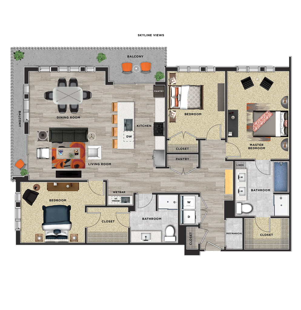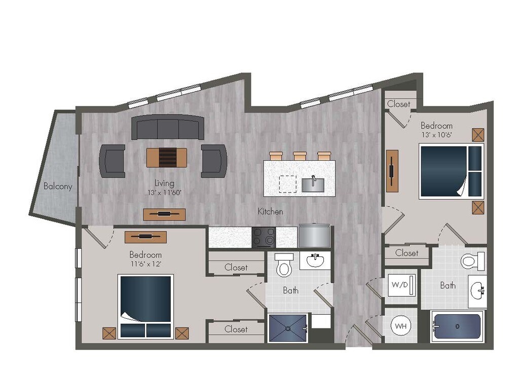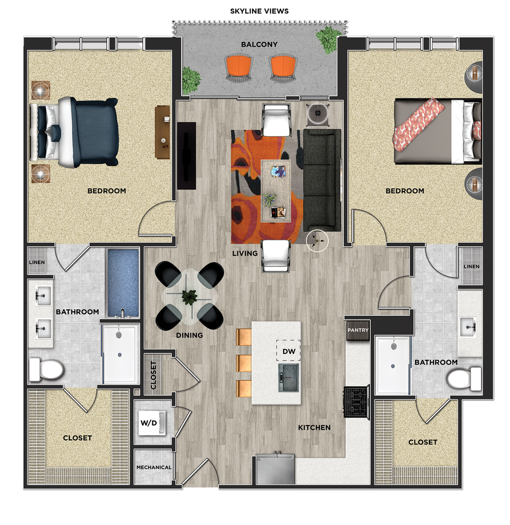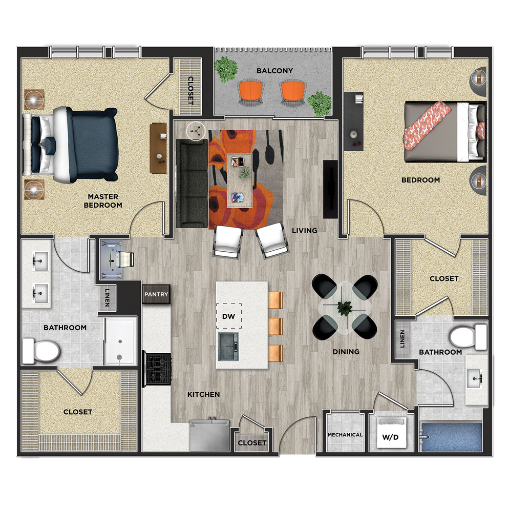 1 Dormitorio, 1 Baño, 795 pies²Disponible AhoraGalería del Modelo