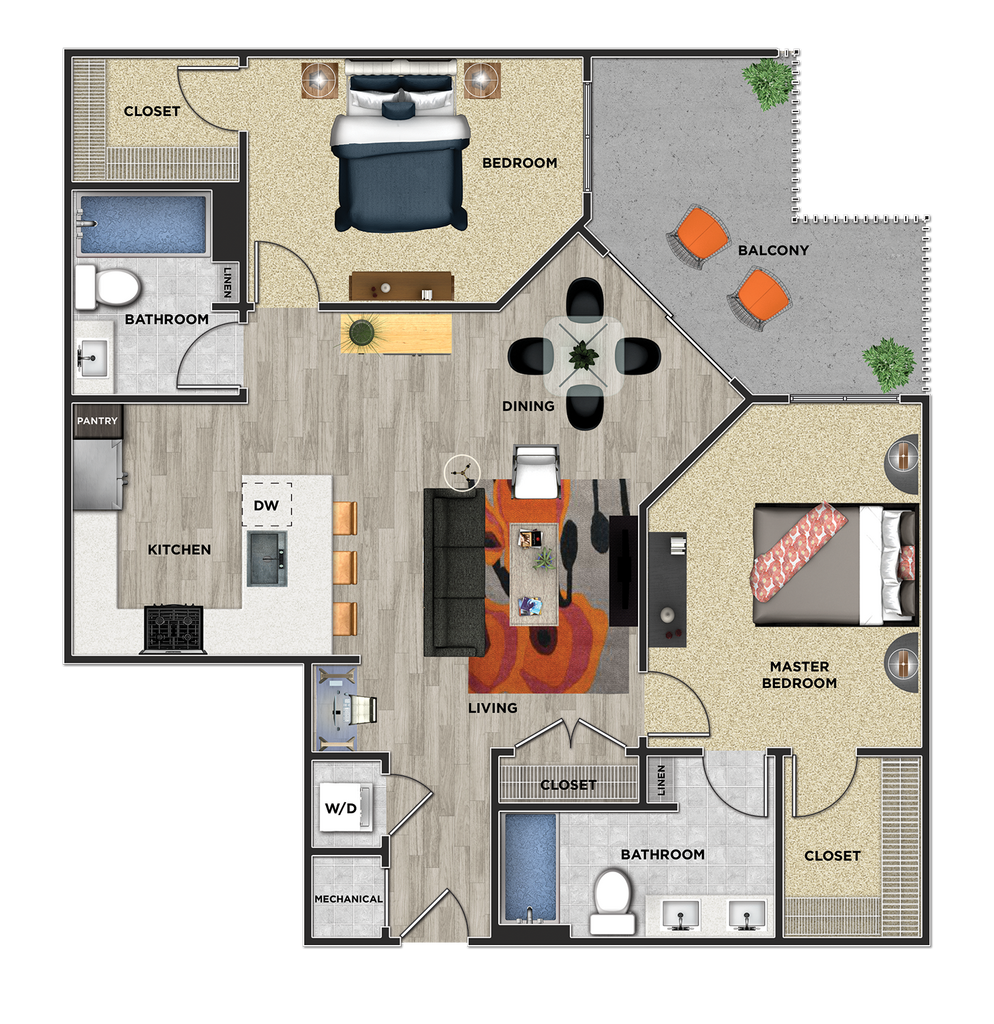 Modelo de apartamento: A1Desde $2,4321 Dormitorio, 1 Baño, 693 sq ftDisponible AhoraPlanosFotos![]()