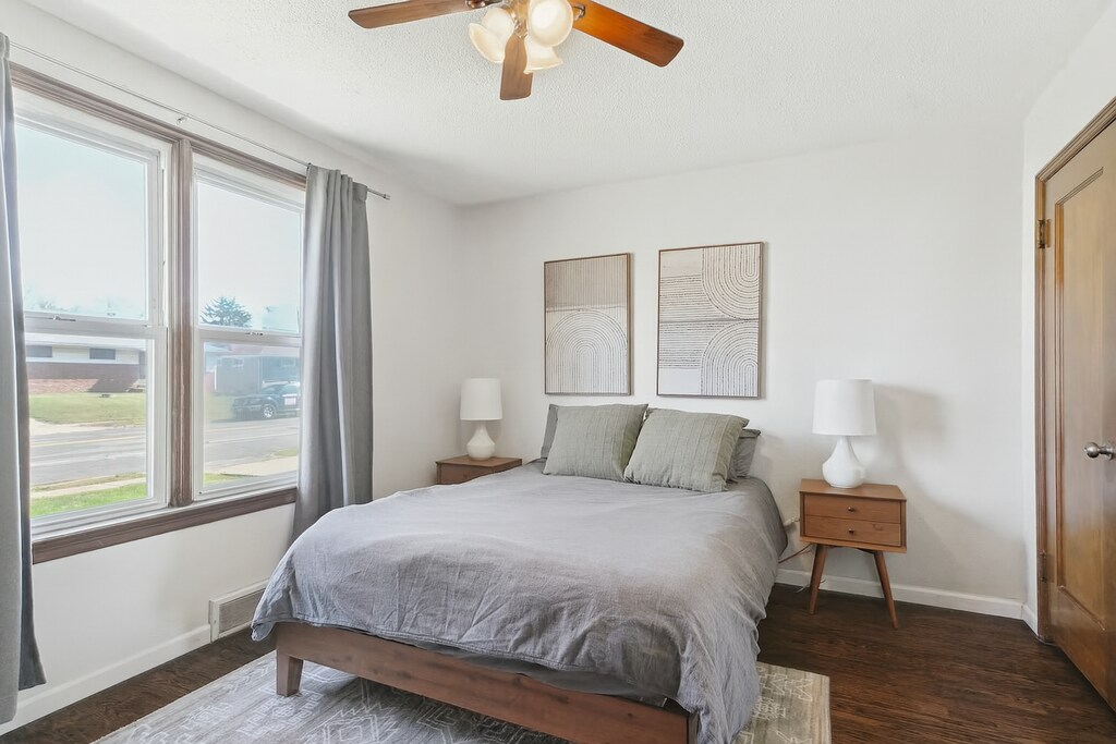 Welcome to our home. It has been updated in the last few years and is furnished to be very comfortable. The location is great, with The Loop's: Bars, Restaurants and shops, a few blocks away! Bright, cheery space with lots of windows! This classic beauty has an open spacious feel, with lots of natural light in the living room and comfortable rooms. Upon first walking in, you'll find a cozy living room with a plush couch, end and coffee tables for your beverages, and a 46" Smart TV to stream all your favorite TV shows and Movies. We do not include Cable. Free Wifi Internet throughout. Central AC & Heat. Next are the two warm Bedrooms where you can curl up with a book or snuggle in for the night. The enjoyable queen-sized bed sleeps two easily. The room is also completed by side tables, lamps, closet + dresser for clothing storage. At the end of the hall you will find the bathroom. Let the stress melt away with a relaxing soak in the bathtub. To the right of the living room you'll find a dining set for 4, which doubles as a convenient workspace. Then into our spacious kitchen, with ample counter space, stocked with all the supplies for the cook in the family. Dishwasher, stove, fridge, microwave -- are all there for your use. Off of the kitchen is our bonus sunroom! Complete with two plush chairs for reading or enjoying your morning beverage. Enjoy it as a sunny spot to catch some warm rays. Outside this door we have a patio dining set for 4, overlooking the grassy enclosed backyard -- great for children. The washer and Dryer are located in the basement. 1 car fits in the driveway and there is ample street parking. We like to serve corporate clients and those looking for temporary housing. Come stay, home away from home! - WiFi - Fully Equipped Kitchen - Sunroom - Fenced Yard - 46" Smart TV - Driveway Parking-1 vehicle Ready to enjoy this charming bungalow near the Loop? Book with us today!