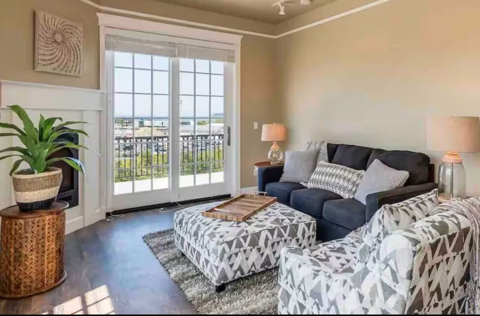 Enjoy the stunning sunsets from this cozy newly furnished one bedroom apartment. Nestled in the heart of the quaint seaside town of Blaine, you are only steps away from fabulous dining, cafes, bars and shops. This cozy one bedroom is fully equipped and has everything you need. Enjoy lounging on the large west facing patio with outdoor fireplace with gorgeous sunsets & views of the harbor….or stay in and enjoy the view inside on the couch with the fireplace. This apartment has a king size bed in the bedroom, and a double pullout couch in the living room. The kitchen has all the amenities you need to cook a gourmet meal….if you choose not to walk to one of the many restaurants. This apartment is used as an Airbnb for the summer months therefore it is all set up with everything you could possibly need…..just pack your suitcase and your home! As all utilities are already set up a $300. Flat rate will be added to the rent to cover all utilities & high speed internet/tv etc.no need to have any services set up!