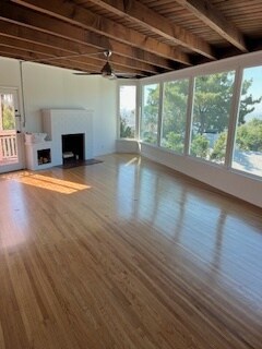 Spacious, Convenient and Tranquil Upper units in 4-unit building. 1-car Garage Parking. Bright 2 bed / 1 bath upper flat. Plenty of storage located on a quiet street in the heart of Hollywood. Walking distance to shops, restaurants the Hollywood Bowl and Metro. Currently being refreshed with new carpet and paint. Fireplace, "wall of picture windows," deck, In unit washer and dryer. Garage for 1 car.