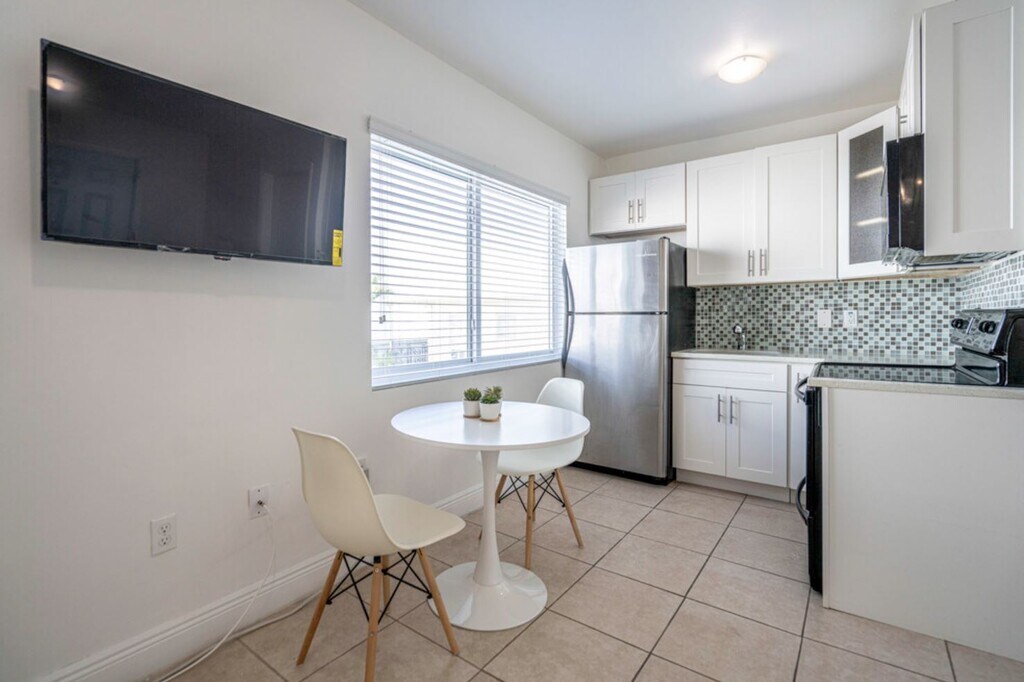 Vive a nivel local en el nuevo de North Beach Town Center. Este edificio de estilo boutique. Este apartamento completamente amueblado cuenta con una cocina de diseñador y baños, ventanas resistentes contra golpes, y techos altos. Este Carlyle Avenue MiMo edificio combina el encanto icónico de primer nivel con modernas comodidades, el nuevo estándar en alquileres en la playa de moda. A distancia a pie de la playa! Lavandería en el lugar gratuito, uno en cada piso. Fácil para mostrar & rápido proceso de aprobación.