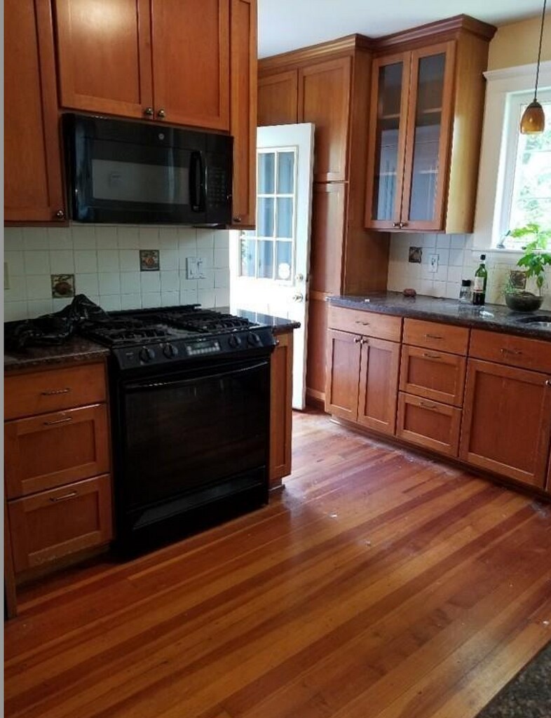 "A little piece of paradise" in this SECLUDED corner lot in Nonantum (yet steps to Whole Foods, shops, markets) Great privacy as its on a small street with almost no thru-traffic. Serene flowered yard sets it apart from the rest! All hardwood floors throughout this updated condo located on the 1st floor of 2-family building. CENTRAL A/C! 2 good bedrooms plus extra office/study in the enclosed heated sunroom. Modern tiled bath. All renovated kitchen with granite counters and cherry cabinets. Extra large california-style closet in larger bedroom. Open dining/living room areas. Walk out of your kitchen onto your own separate portion of deck. Half basement for all your storage needs and hookups for laundry. 1Garage Parking and 1car tandem. Beautiful outdoor space with a sectioned off deck area above garage! A REAL HIDDEN GEM! PETS NEGOTIABLE WITH EXTRA FEE AVAILABLE OCTOBER 1