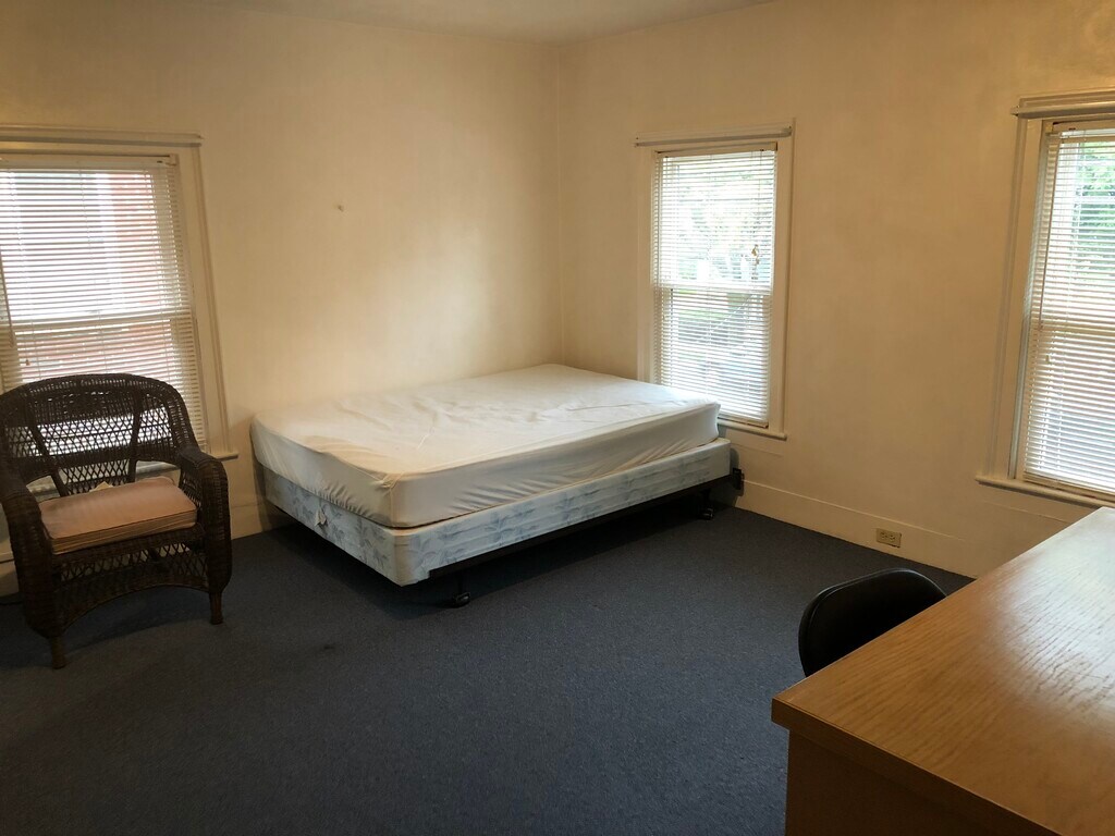 An 8 bedroom student charm!Located just a 5 minute walk to the downtown nightlife- bars, entertainment and where all your friends live! (This is an 8 bedroom for $525/bed. This advertising company only allows the bed number to go up to 6 total. ) Groups of 6-8 can tour! 3 baths Unique house set - up, which is a must see house! 3 bedrooms first level, 3 bedrooms upstairs front, and 2 bedrooms back upstairs! HUGE common area- stretches entire width of house with leather couches, loveseat, end tables, SMART TV for streaming, bookshelf ! Free in unit washer and dryer off common areas! Huge kitchen with all appliances and walk out patio with additional yard and shed! Off- street parking , bus stop across the street! Call for a tour! $525/bed