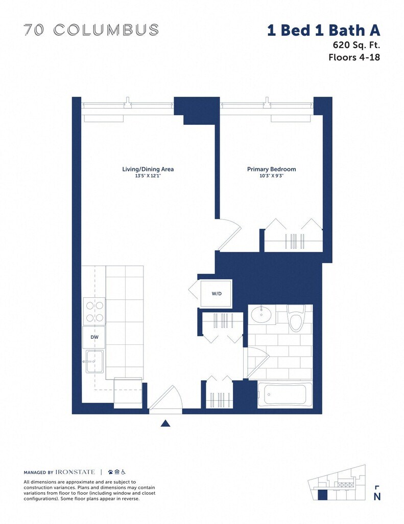 Studio C - Plano 2 Unidad de apartamento: 1703Modelo de apartamento: Studio CEstudio, 1 Baño, 519 sq ftDisponible June 4, 2026![]()
