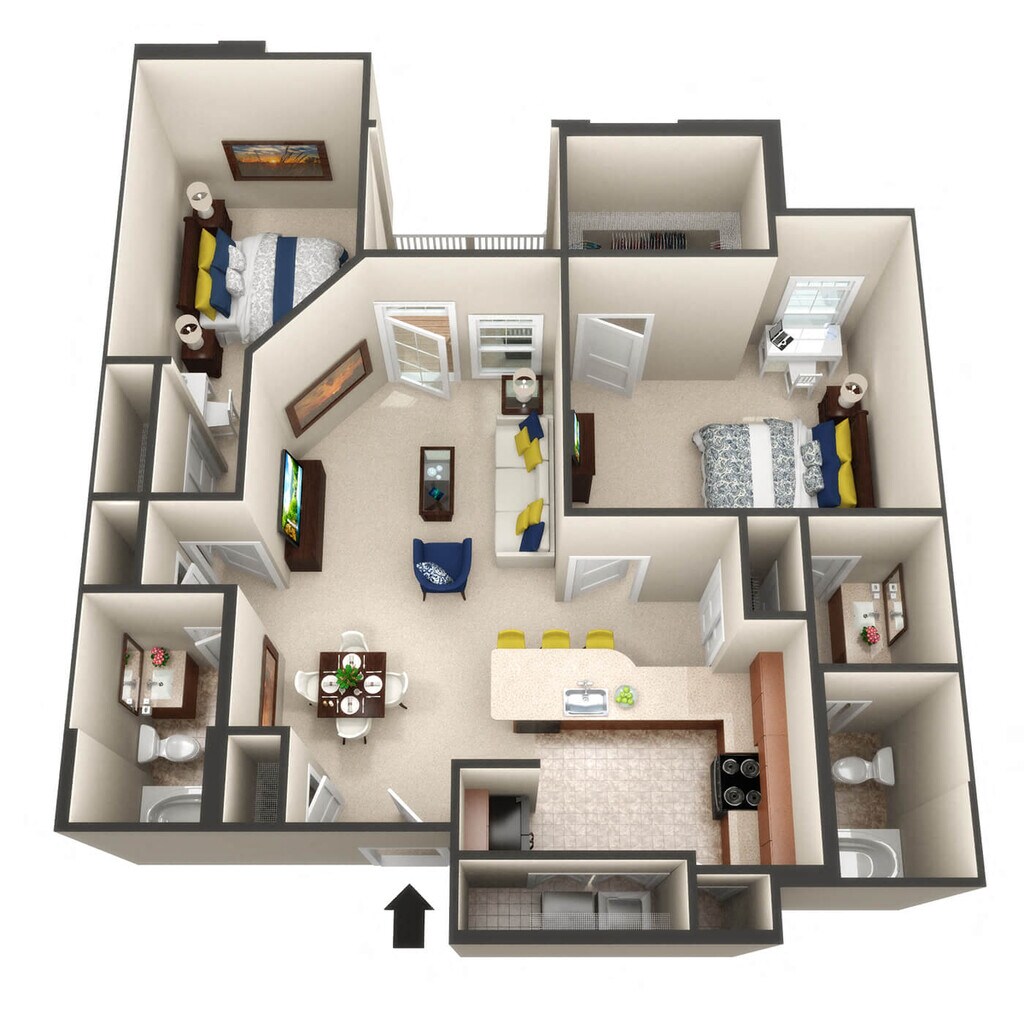 2 Dormitorios, 2 Baños, 1074 pies²Disponible AhoraGalería del Modelo