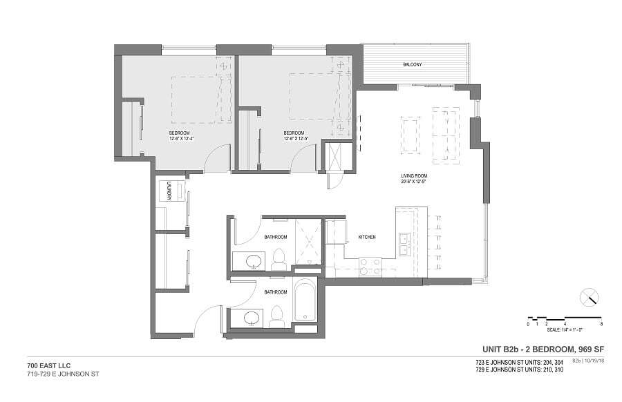 B1a - Plano 2 Unidad de apartamento: 723-202Modelo de apartamento: B1a$2,6992 Dormitorios, 2 Baños, 1020 sq ftDisponible June 2, 2026Plano: B3