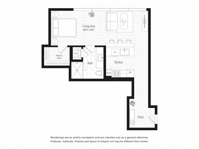 Modelo de apartamento: S2Estudio, 1 Baño, 464 sq ftDisponible AhoraLos planos de la planta son una interpretación artística. Todas las dimensiones son aproximadas. Los tamaños o el detalle del producto real y sus especificaciones pueden variar. No todas las características están disponibles en todos los hogares para rentar. Los precios y la disponibilidad están sujetos a cambios. El alquiler que se muestra es mensual. Se pueden aplicar ciertos cargos, por ejemplo, entrega de paquetes, recolección de basura, agua, servicios, etc. Depositos varian. Consulta a un representante para conocer detalles.