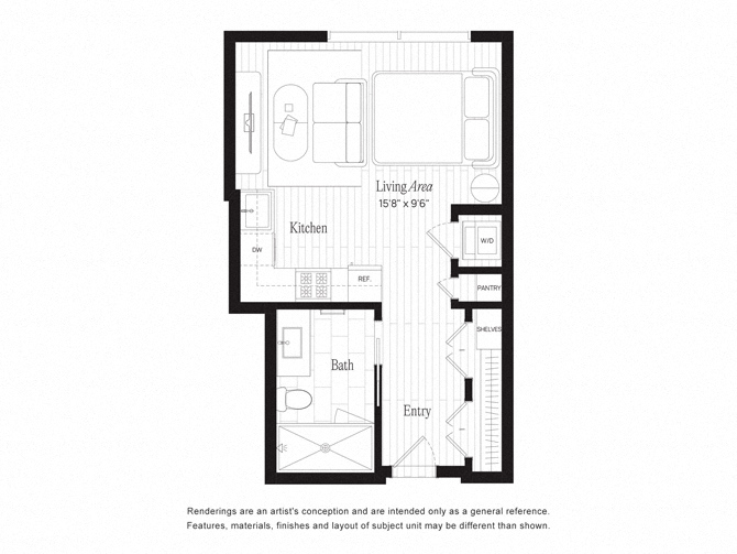 Estudio, 1 Baño, 652 pies²Disponible Dec 15El más grandeEsta opción tiene las unidades más grandes para este modeloGalería del Modelo