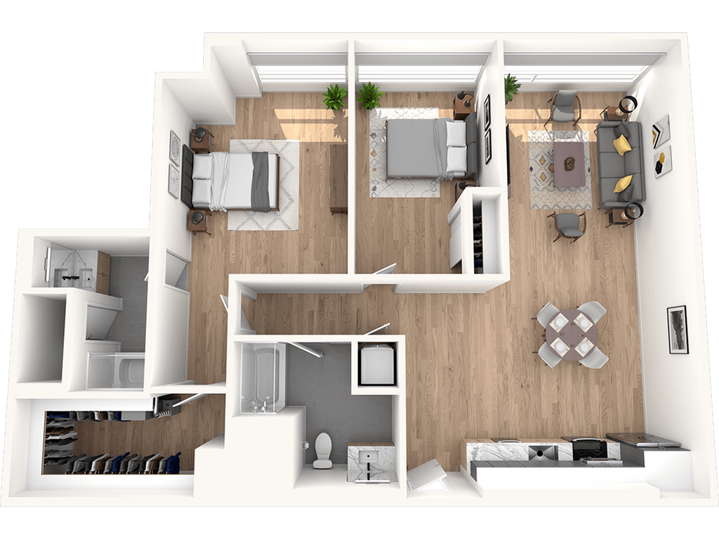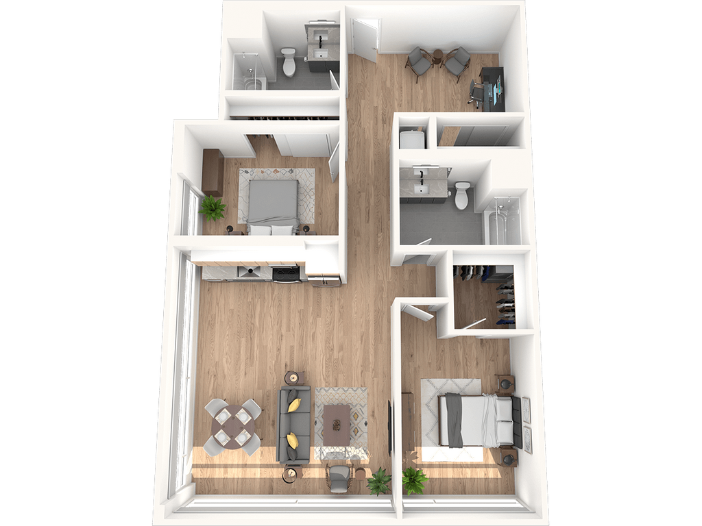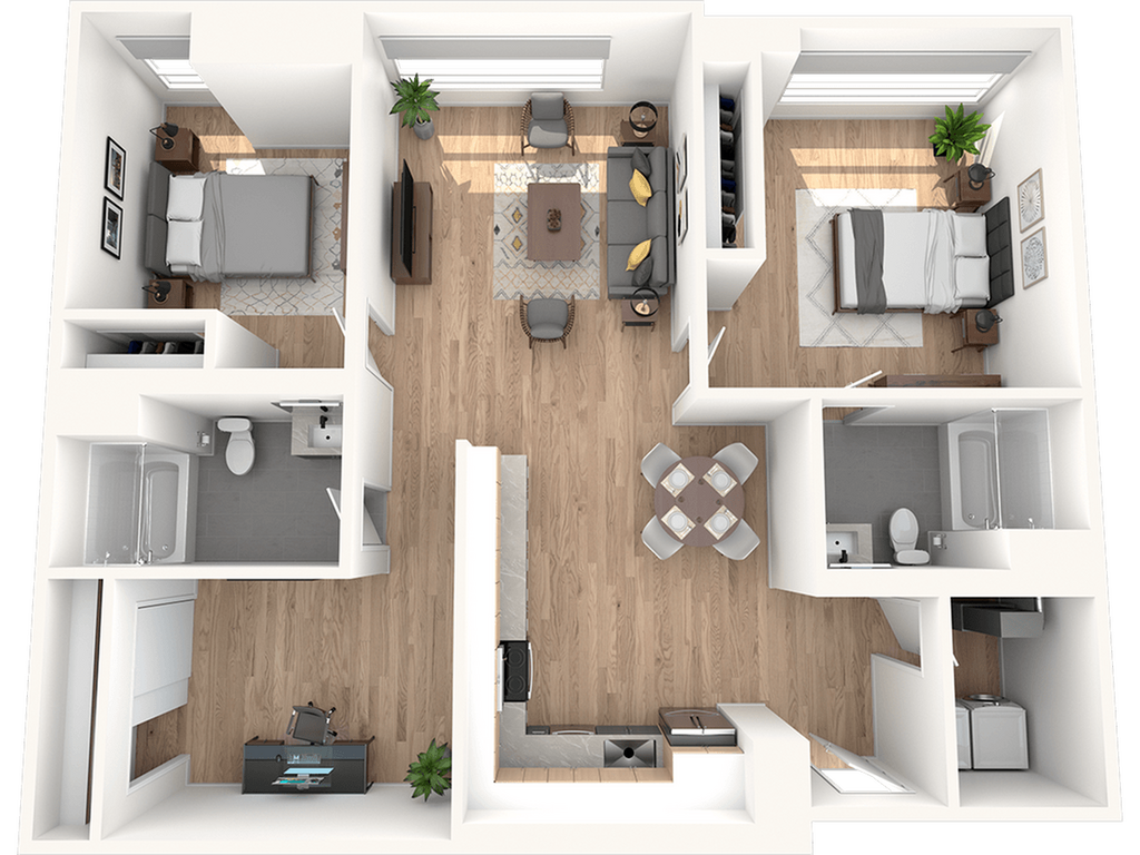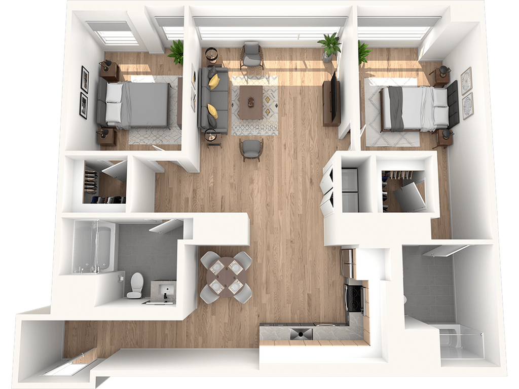 Modelo de apartamento: B4Desde $3,9992 Dormitorios, 2 Baños, 1271-1357 sq ftDisponible Ahora![]()