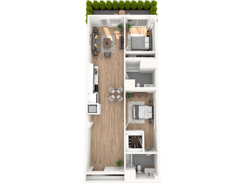 Modelo de apartamento: A2Desde $3,5991 Dormitorio, 1 Baño, 957-1163 sq ftDisponible Ahora![]()