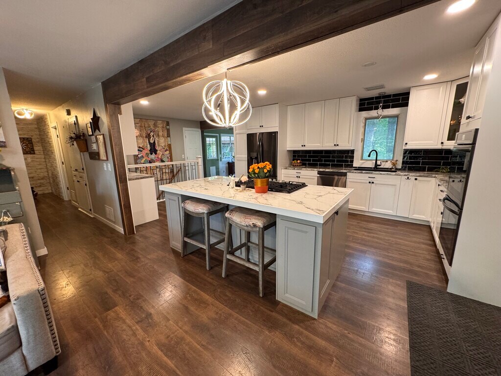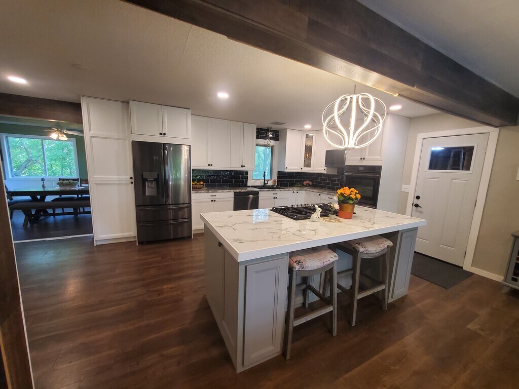 Beautifully remodeled and full of charm, this 3-bedroom, 2-bathroom home is for rent on a quiet cul-de-sac with lake access and your own private dock. A wooded walkway on your land leads straight to the dock on Martin Lake, which offers a relaxing "up-north" cabin feel without the long drive. Inside you'll find new appliances, countertops and flooring, a spacious dining room with scenic wildlife views, and a finished basement with a small kitchen area and a fridge for extra storage when entertaining. One of the rooms is ideal for a home office, reading nook, or versatile flex space. There's lots of space for storage throughout the property, plus a good-size shed for your tools and gear. Entertain or unwind year-round in the full-season porch, large deck and screened-in gazebo. The yard is fenced for dogs and there's a secondary driveway with water and power hook-ups for RV or pontoon parking. Washer, dryer, and water softener included. Enjoy the best of serene nature living with all the conveniences of modern comfort call today for details or a showing!