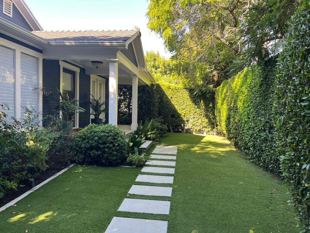 Gated and Private 1924 Hollywood Bungalow ! Mature greenery surrounds this restored and remodeled gem with an eye for detail. 3 spacious wallpapered bedrooms,( 3rd BR easily converts to office) closet systems and a central bath. Full entertainer’s kitchen. Abundant windows- each with blinds to let in just the right amount of light. Gas Fireplace and built in sound system. Open living and dining rooms blend into an entertainment space. Equipped for alarm system and security cameras. Washer and Dryer provided as courtesy. Remote operated driveway gate as well as a pedestrian gated. Sunken hot tub on back deck. Garage and 1/1 guest house also available. Gardener and water included. Ceiling fans. Central AC.