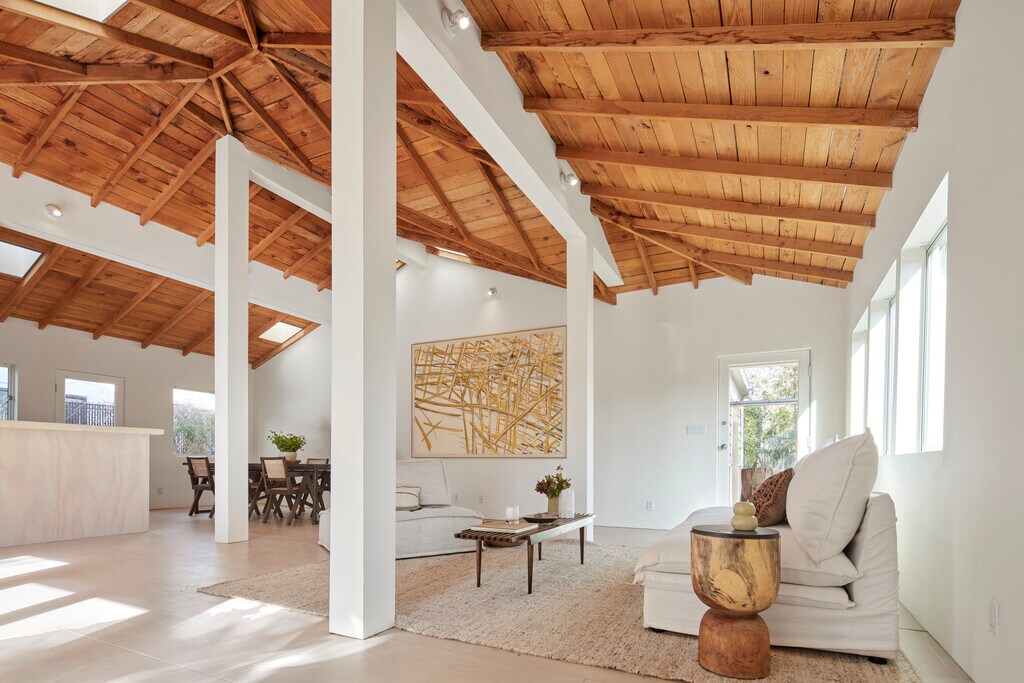 Located on a prime corner just one block East of Abbot Kinney Blvd, The Bridge House - built by iconic, Venice architect Charles Ward - is a short walk to some of the best shops and restaurants in LA, and a 5 minute bike ride to the beach. The Bridge House features three bedrooms and two and a half baths, and its three levels were built to create a sense of sanctuary, nurture creativity, and celebrate light and space. Features include an open “great room” of vaulted ceilings and skylights, that morphs into a dining and kitchen area with concrete counters and stainless steel appliances. Built on an extra large corner lot with and unobstructed southwestern light, the house itself is a celebration of greenery, light and space. Additional features include a gorgeous, woven bamboo and stone fence, exotic bamboo, stone and meadow landscaping with a 400 square foot garden pavilion, three separate balcony areas, and a meditative, tatami nook. A separate studio-office area just off the garden provides perfect additional, open and private creative space. Fall asleep to the sound of the surf in the sky bedroom and wake to a celebration of light and shadow that travels through this spacious home throughout the day.
