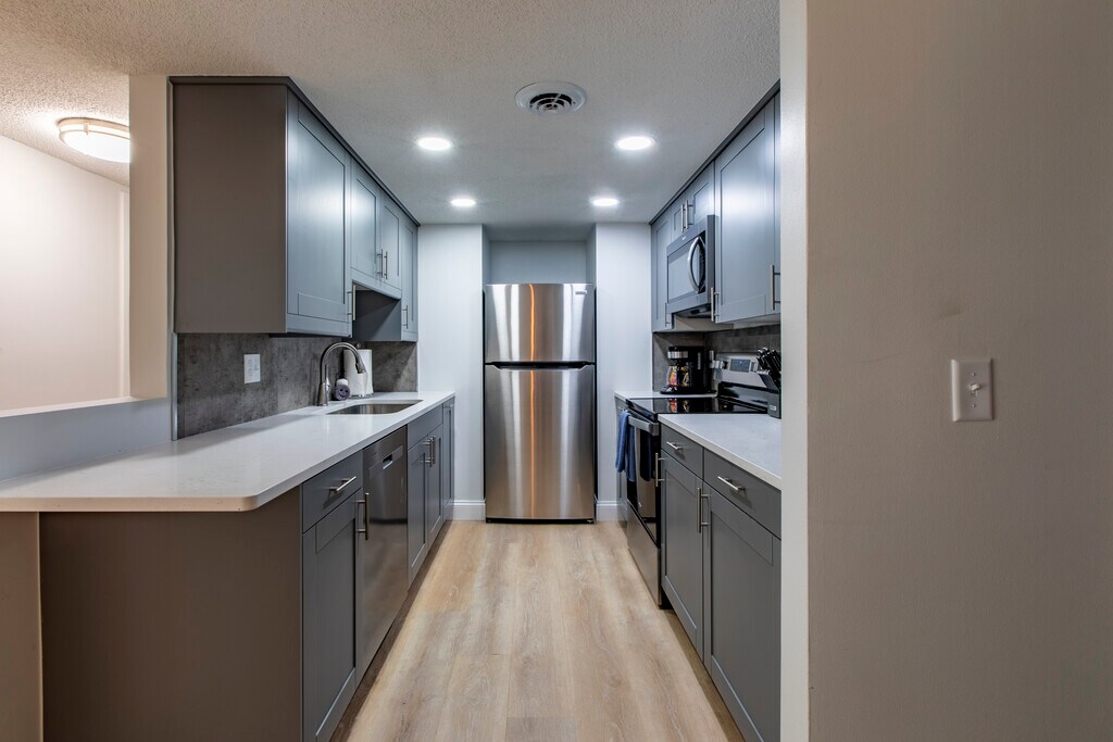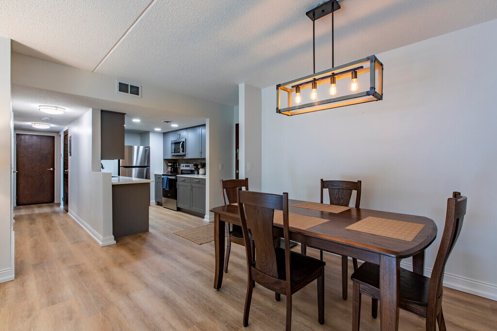 Fully furnished condos near Downtown Rochester. Just 6 blocks from Mayo Clinic, these stylish condos offer the perfect home base for traveling nurses, long-term patients, or professionals seeking convenience and comfort. Enjoy modern finishes including quartz countertops, a tiled walk-in shower, in-unit washer & dryer, and high-end furnishings and décor—making each unit completely turn-key ready. Lease Details: - 6–12 month lease options available - Utilities & cable paid by tenant - Lawn care, snow removal, garbage service, high-speed internet, and covered parking included Background and credit check required for all occupants over 18.