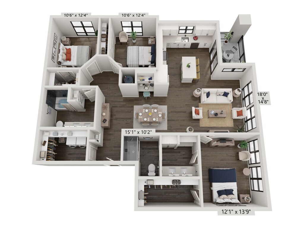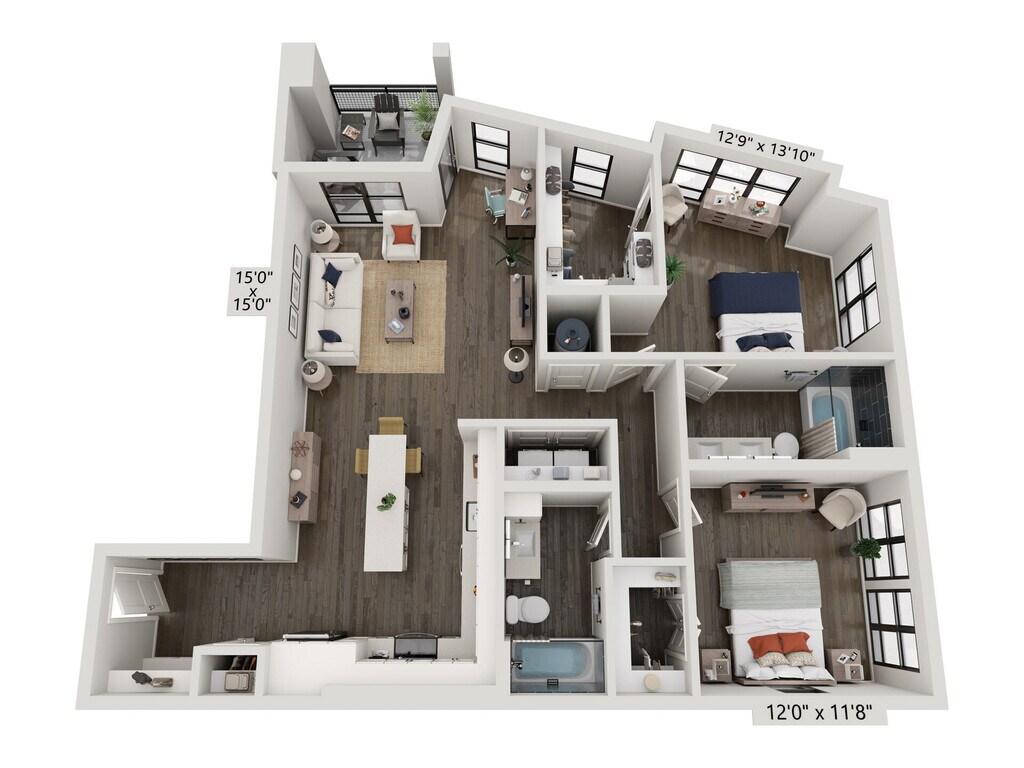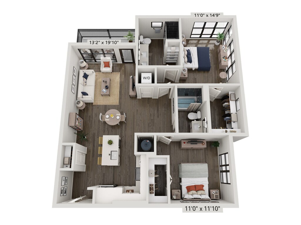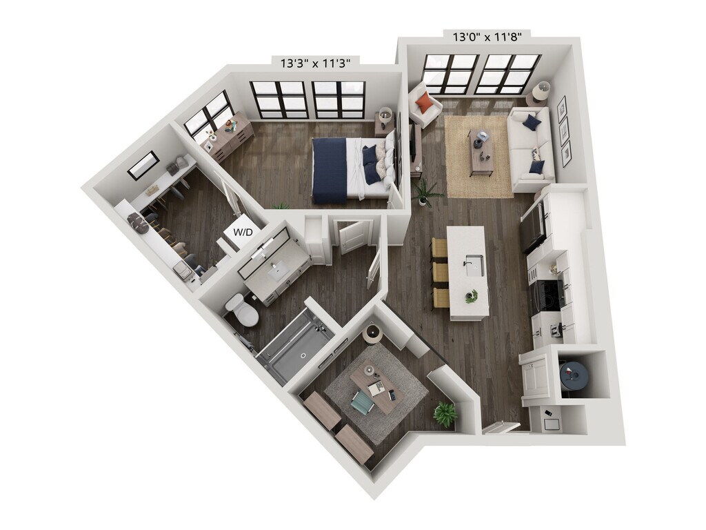 1 Dormitorio, 1 Baño, 806 pies²Disponible AhoraGalería del Modelo