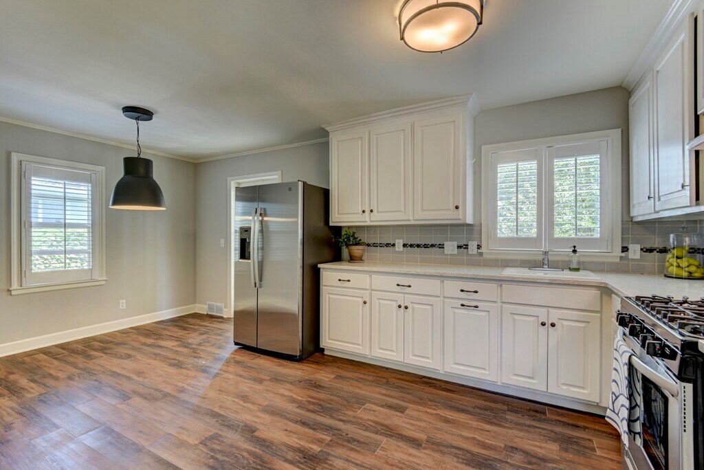 Adorable casa District 66 de varios niveles con un garaje más profundo y un patio apartado y completamente cercado. El solárium con ventanas tiene vista al patio trasero. La sala de estar con hermosos pisos de madera tiene una pared completa de ventanas con persianas de plantación y chimenea de gas con chimenea elevada y empotrable. La cocina blanca y limpia tiene encimeras de granito. NUEVO frigorífico de acero inoxidable y cocina a gas. NUEVOS accesorios de iluminación en gran parte del hogar. Paredes, techos, armarios, puertas y molduras recién pintados. NUEVAS persianas y varillas de cortina. Remodelación del baño principal con NUEVOS pisos de azulejos hexagonales, moderno tocador de salvia, grifo y accesorios dorados y ducha con azulejos subterráneos con nicho de jabón. ¡Enorme vestidor y dos vestidores adicionales! Suelos de madera en todos los dormitorios. Sótano terminado con sala familiar, toneladas de almacenamiento y conexiones de lavandería. Conveniente ubicación céntrica a sólo unas cuadras de The Crossroads, Target, Dodge St y la futura sede de la Biblioteca Pública Central de Omaha.