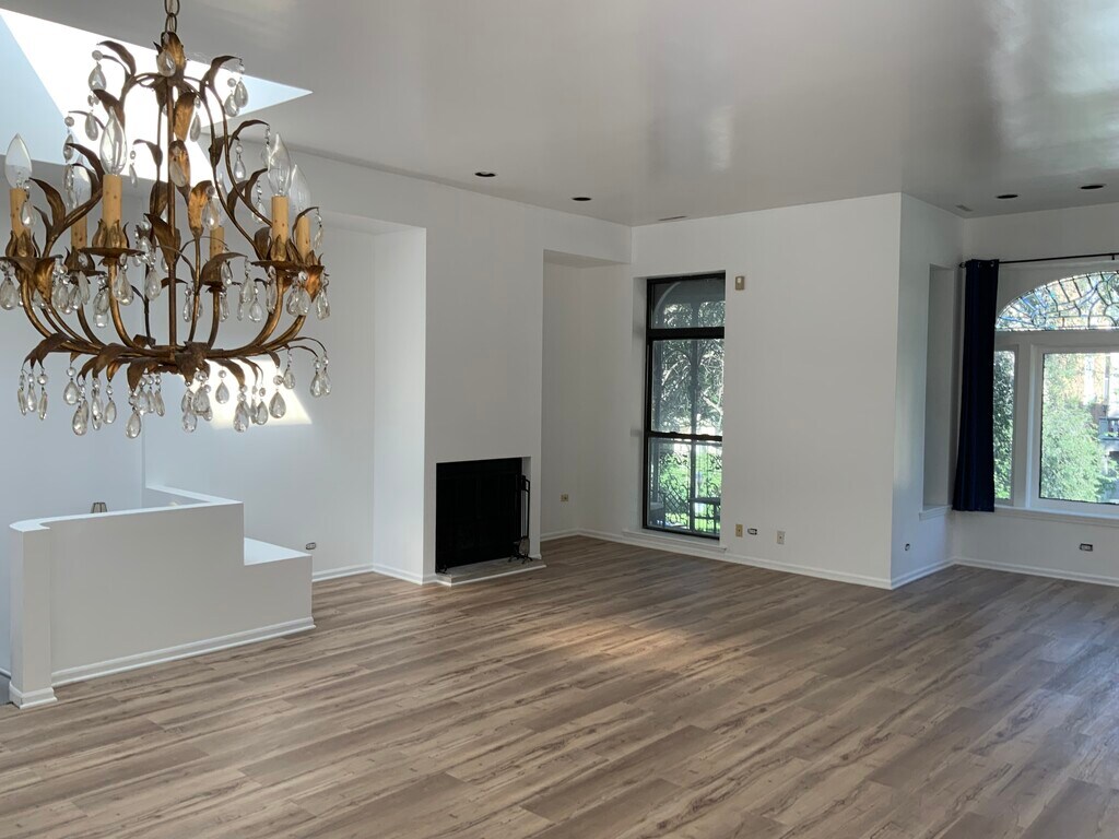 Come see this spacious rehabbed 2 bedroom, 2 bathroom apartment for rent on the second floor of a vintage Grey Stone in the heart of Lokeview Chicago that features high ceilings, large skylight fireplace, and a deck that is great for entertaining.
