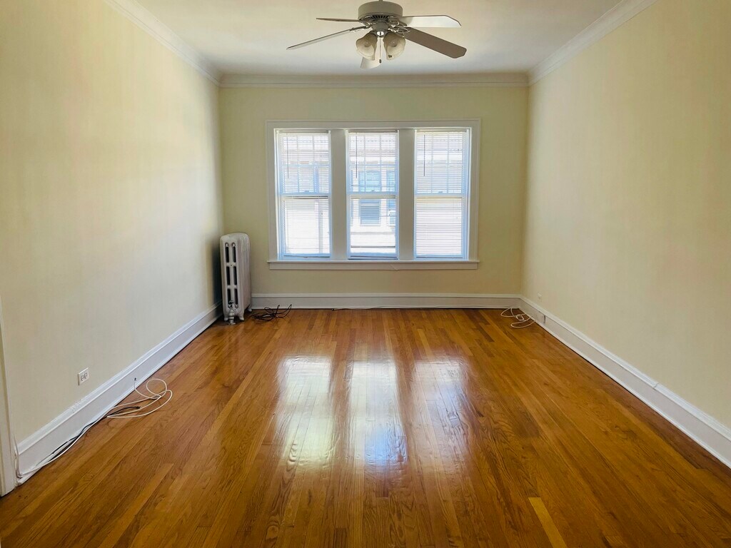 Charming one bedroom in Evanston on tree lined residential street! Unit features a large living room with a huge closet, as well as a separate dining room. Kitchen with dishwasher. Interior access to laundry room, and storage locker. Off street parking for $100 per month---confirm availability. Cats welcome, sorry no dogs. Close to Purple line and Metra station as well as NU shuttle bus!