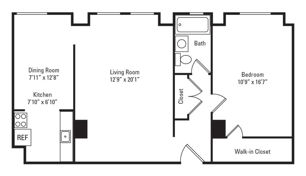 Modelo de apartamento: 1 bed- bath 700 sf1 Dormitorio, 1 Baño, 700 sq ftNo Disponible![]()