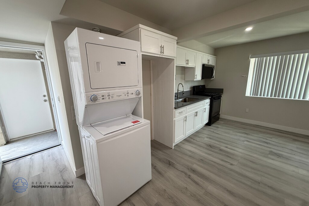 Be among the first to live at 716722 East 7th St., Long Beach, CA, a newly built apartment community in Long Beach offering modern studio, one-bedroom, and two-bedroom apartment homes. This gated community features controlled access, a shared courtyard, recycling, short-term lease options, and 24-hour availability. Inside, each home is designed with a fresh contemporary look and practical everyday features, including hardwood-style flooring, window coverings, air conditioning, electronic thermostats, extra storage, and updated finishes throughout. Kitchens are equipped with efficient appliances, including a refrigerator, microwave, gas range, and disposal, along with modern cabinetry and sleek countertops. Bathrooms feature updated vanities, contemporary fixtures, and a tub/shower combination with large-format tile surrounds. Floor plans range from standard studios to large studios, one-bedroom/one-bath, and two-bedroom/two-bath layouts. Large studios, one-bedroom/one-bath, and two-bedroom/two-bath apartments include full-size in-unit washers and dryers. Standard studios do not include in-unit washer/dryer.