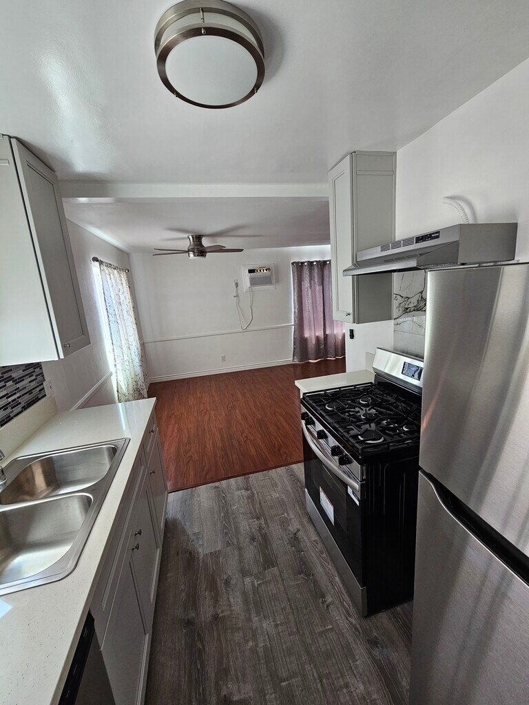 Freshly painted apartment and just remodelled. Large closet with extra storage areas in the hallway and dining area. Walking distance to major transportation, Hollywood Blvd, restaurants, and shops. Quiet neighbourhood in the heart of Hollywood. We pay for hot/cold water and trash. No additional fees. More storage available in the garage area. Pre-wired for Spectrum cable. Gated building and security cameras. Owner pays for hot and cold water, and trash.