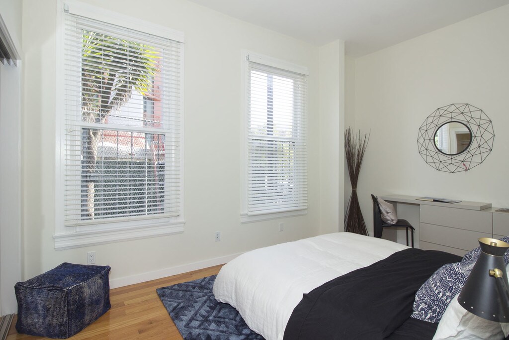 NOPA no es fácil de encasillar; es un clásico remix de SF. Parques ecológicos, barberías tradicionales, restaurantes populares y personas encantadoramente excéntricas: NOPA ofrece todo. El patrimonio musical de la zona es épico, con raíces profundas de jazz, y su actual reputación de área de juegos para adultos es bien merecida. Desde personas que corren temprano por la mañana hasta personas que bailan hasta altas horas de la noche, NOPA tiene las respuestas. Las pizarras son sorprendentes como también lo es este hermoso edificio celeste (por favor, deja tus Sharpies en casa). Las ventanas mirador permiten aprovechar al máximo los días soleados y los electrodomésticos de bajo consumo, como la lavadora/secadora, que disminuyen tus tareas domésticas. Gracias a las actualizaciones de diseñador, este eterno y clásico NOPA trasciende las modas. Encanto emblemático. Vida moderna. En RentSFNow, nos enorgullecemos de nuestra red de edificios clásicos restaurados en todo San Francisco. Completa solo una solicitud para obtener acceso a nuestro amplio inventario de apartamentos completamente renovados en los vecindarios con más historia de la ciudad. Ofrecemos un servicio de atención al cliente de excelencia
