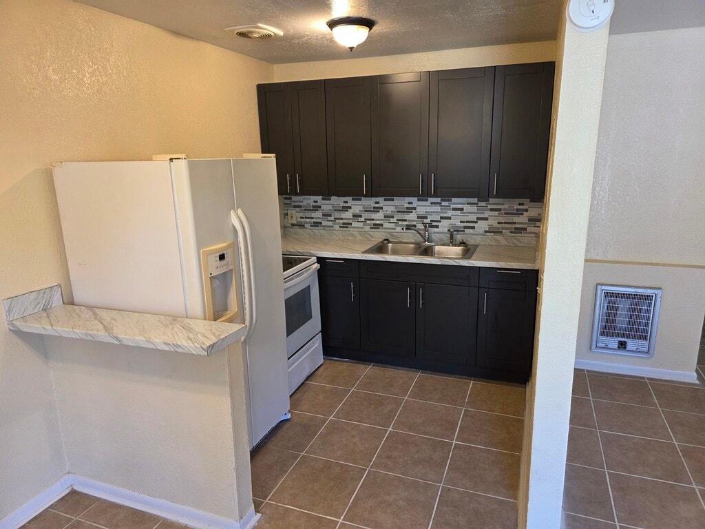 This two-bedroom, one bath townhome has been completely renovated with new kitchen cabinets, countertops, appliances, tile floors and ceiling fans throughout, upgraded bathroom, washer & dryer connections, AC and heat.