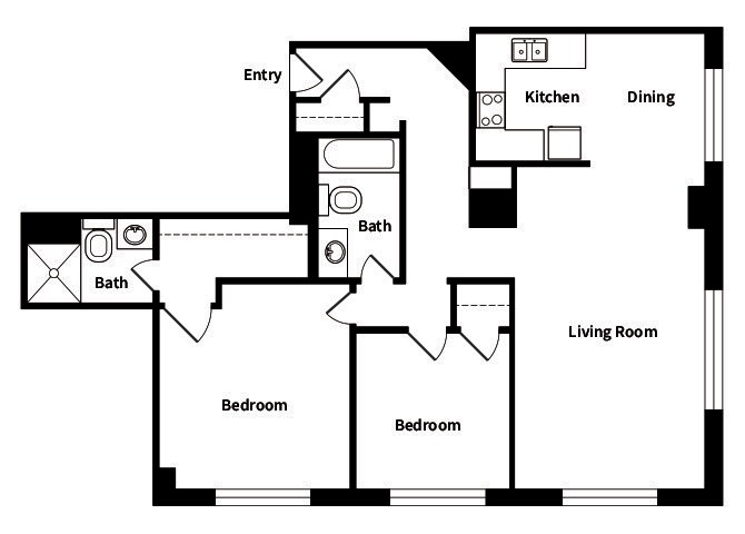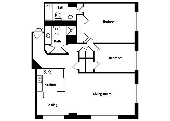 Modelo de apartamento: A2Llame para Precios1 Dormitorio, 1 Baño, 630 sq ftNo Disponible![]()