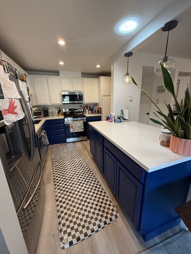 ¡Se admiten mascotas! Amplio apartamento renovado de dos (2) habitaciones y dos (2) baños ubicado en la mejor área de West Hollywood en una tranquila calle bordeada de árboles. Control de acceso seguro al edificio, con cámaras de seguridad en todo el lugar. Electrodomésticos de acero inoxidable: lavavajillas, nevera con máquina de hielo, estufa/horno, microondas. Encimeras de piedra en la cocina con bar Pisos de bambú en todo el apartamento, excepto azulejos en baños y cocina Amplia área de desayuno/comedor Lavadora y secadora grandes en el apartamento Mucho espacio de almacenaje que incluye un vestidor en la habitación principal y otro amplio armario con estantes en la habitación para huéspedes. En el baño de la suite principal Nuevas ventanas de doble panel que brindan abundante luz natural. Estacionamiento reservado en tándem para 2 automóviles con puerta eléctrica disponible. Unidades de aire acondicionado de pared en las habitaciones y la sala de estar Persianas hechas a medida en la parte superior y en la parte inferior para mayor privacidad con persianas blackout en las habitaciones La habitación principal tiene capacidad para una cama tamaño king con mesas laterales e incluso para un sillón y un armario, y cuenta con un amplio vestidor La segunda habitación con armario grande. La sala de estar tiene capacidad para un sofá de más de 12 ft. Chimenea a gas en la sala de estar Sistema de intercomunicador para la puerta de entrada A menos de 1 minuto a pie del mercado de productores de Melrose, la moderna Melrose Ave y Melrose Place, restaurantes/cafés, estudios de yoga y pilate, etc. Ubicado en una calle bordeada de árboles con solo unos pocos edificios de apartamentos en la calle. La mayoría de los apartamentos unifamiliares de alta gama en la calle van desde $3 a $10 millones. *Se admiten la mayoría de los animales, el depósito de seguridad se basa en la solicitud que reúna los requisitos.