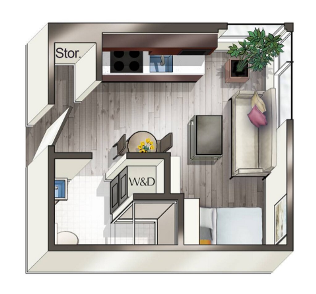 Unidad de apartamento: 113 - FurnishedModelo de apartamento: 0BR/1.0BAEstudio, 1 Baño, 270 sq ftDisponible Ahora![]()