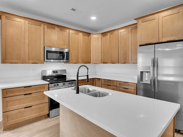 Here is your opportunity to be the very first tenant in this newly constructed condo in the desirable community of West Hills! The home is within walking distance to West Hills Elementary and West Hills Park via sidewalk! This all brick townhome features 9 foot ceilings and a spacious garage. The split bedroom floor plan provides privacy for the primary suite and positions the occupant close to the living area, kitchen, and covered back porch! The backyard is flat and spacious and adjoins a large field. The kitchen offers 42" upper cabinets for ample storage. All cabinets throughout the home are solid wood with soft close doors and drawers. White quartz tops and stainless steel appliances provide a desirable luxurious finish. Retreat to the primary bathroom where you will find a large double vanity and custom tile shower with glass surround. The closet is large with significant storage for clothes and shoes. The guest bathroom features a tub/shower combo and suits the needs of families with children of any age. Lawn care/maintenance and trash/recycles included in cost of rent (Paid for by owner). The grass in the photos has been digitally added. Reach out for more information or to view in person!