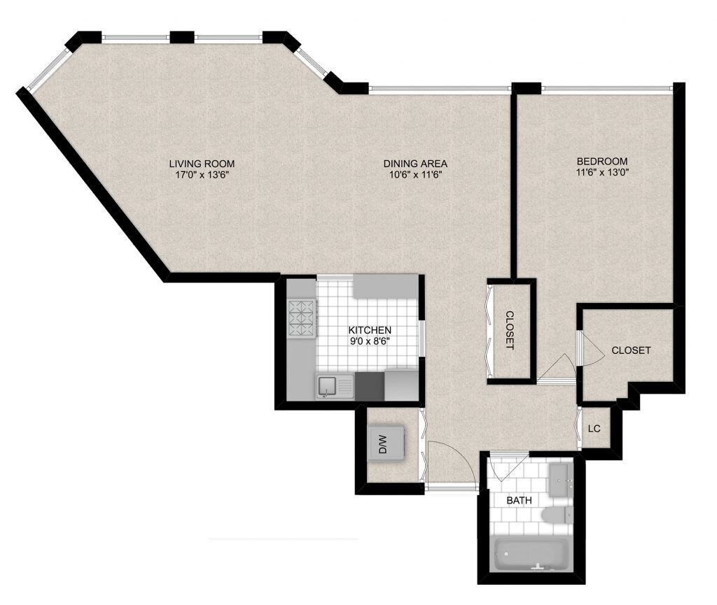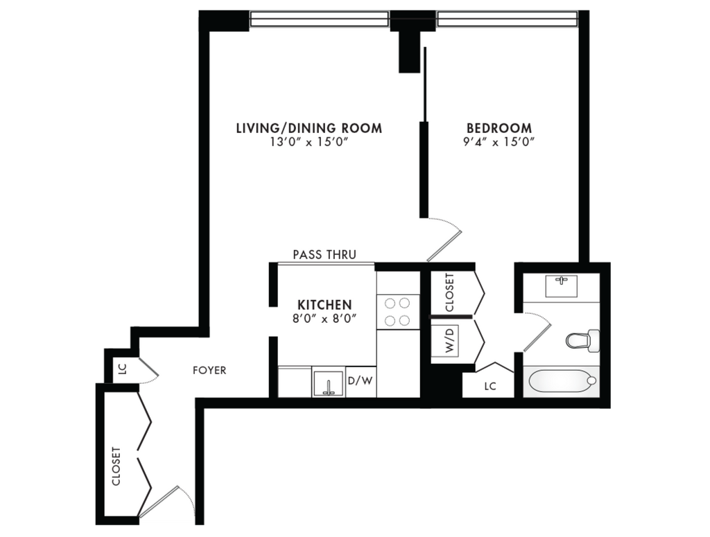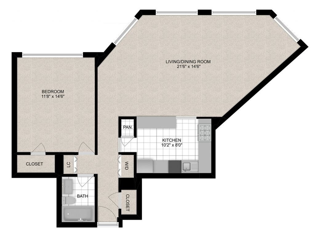 1 Dormitorio, 1 Baño, 824-861 pies²Disponible AhoraEl más grandeEsta opción tiene las unidades más grandes para este modeloGalería del Modelo