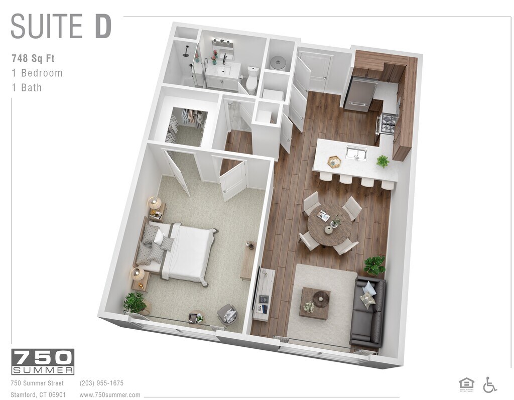 Modelo de apartamento: Suite DLlame para Precios1 Dormitorio, 1 Baño, 748 sq ftNo Disponible![]()