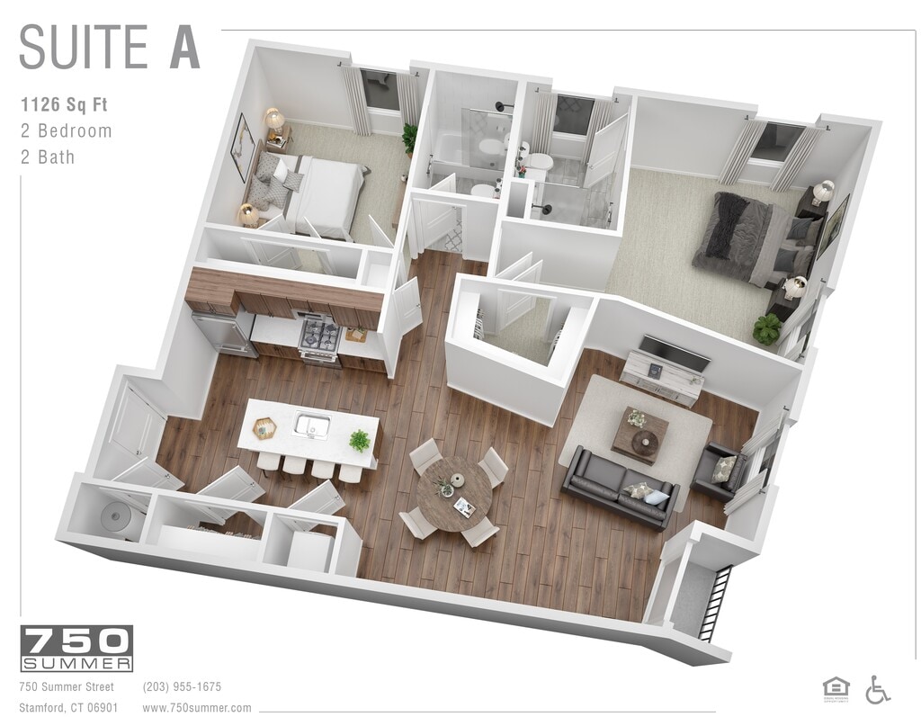 Modelo de apartamento: Suite ELlame para Precios2 Dormitorios, 2 Baños, 1071 sq ftNo Disponible![]()