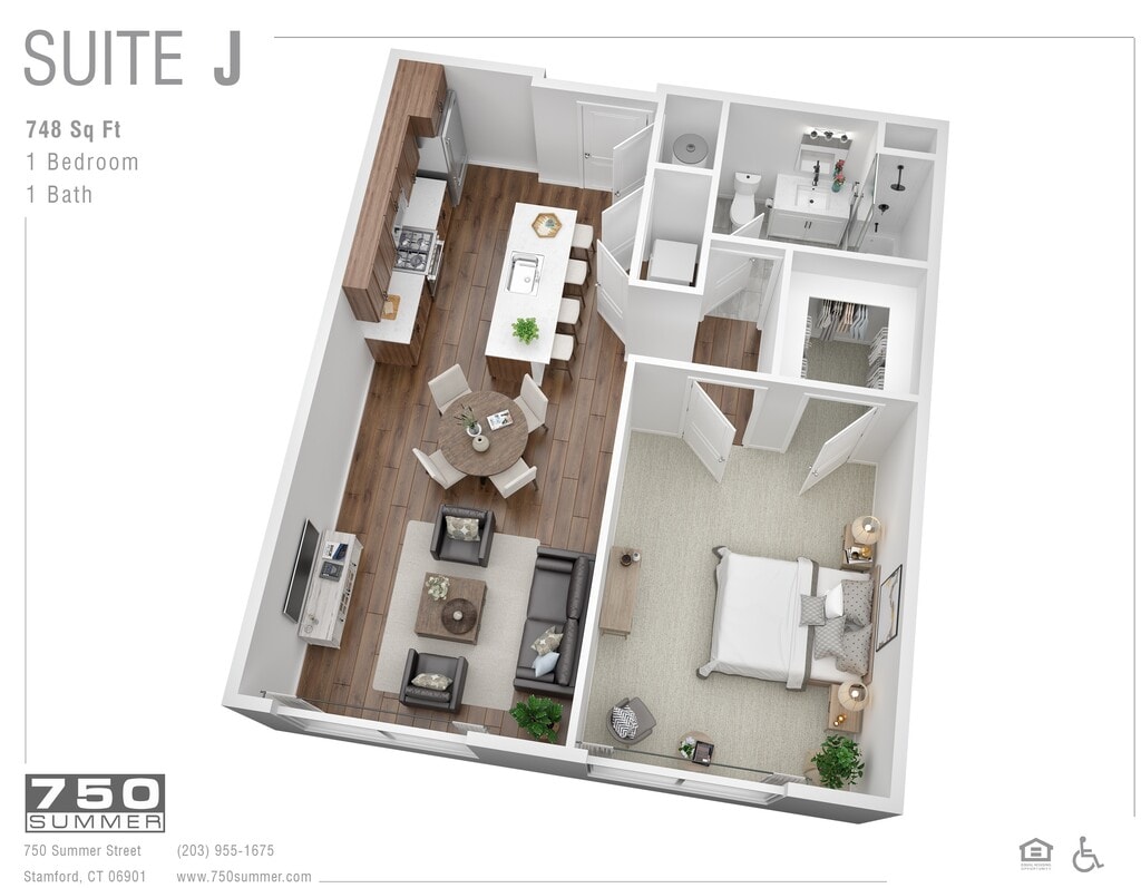 Suite I - Plano 1 Unidad de apartamento: 505Modelo de apartamento: Suite I$2,7001 Dormitorio, 1 Baño, 691 sq ftDisponible December 28, 2025Suite J