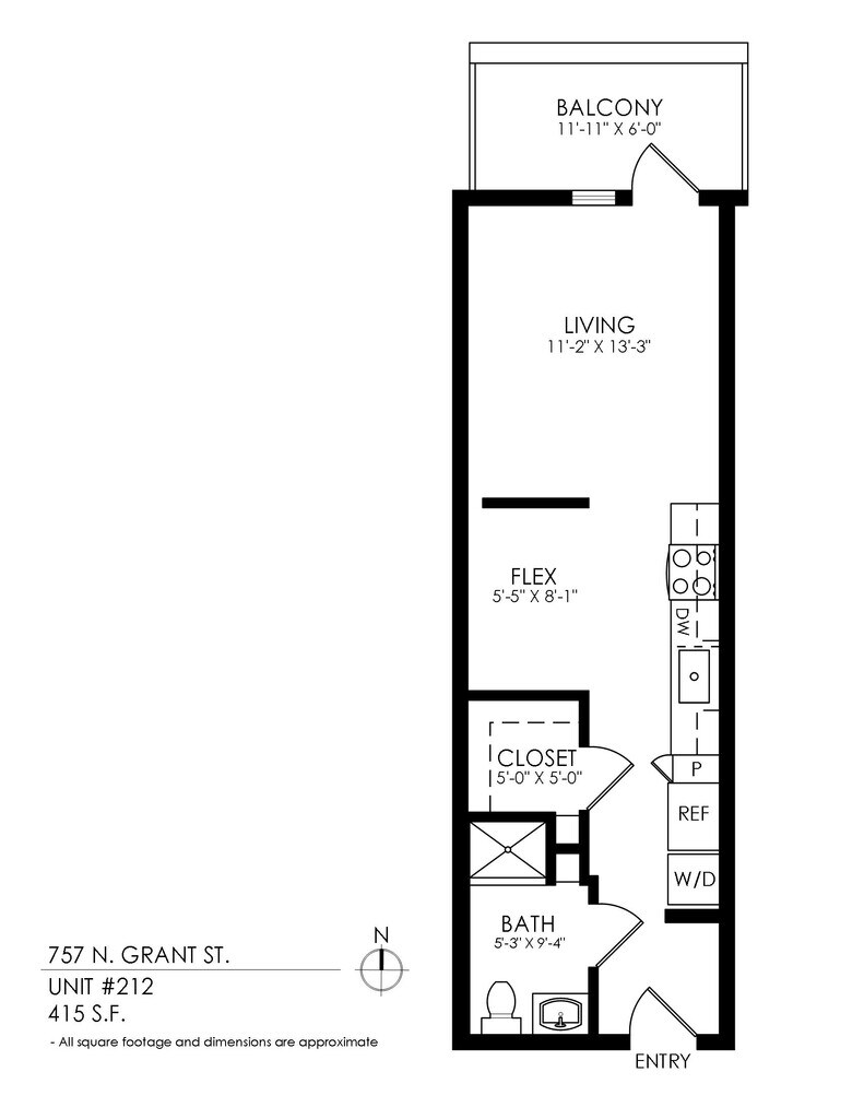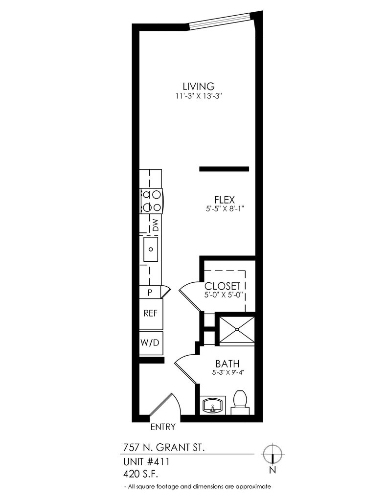 Studio - Plano 5 Los planos son representaciones artísticas. Todas las dimensiones son aproximadas. El producto y las especificaciones reales pueden variar en tamaño o detalle. No todas las características están disponibles en cada vivienda en alquiler. Por favor, consulta con un representante para obtener más detalles.