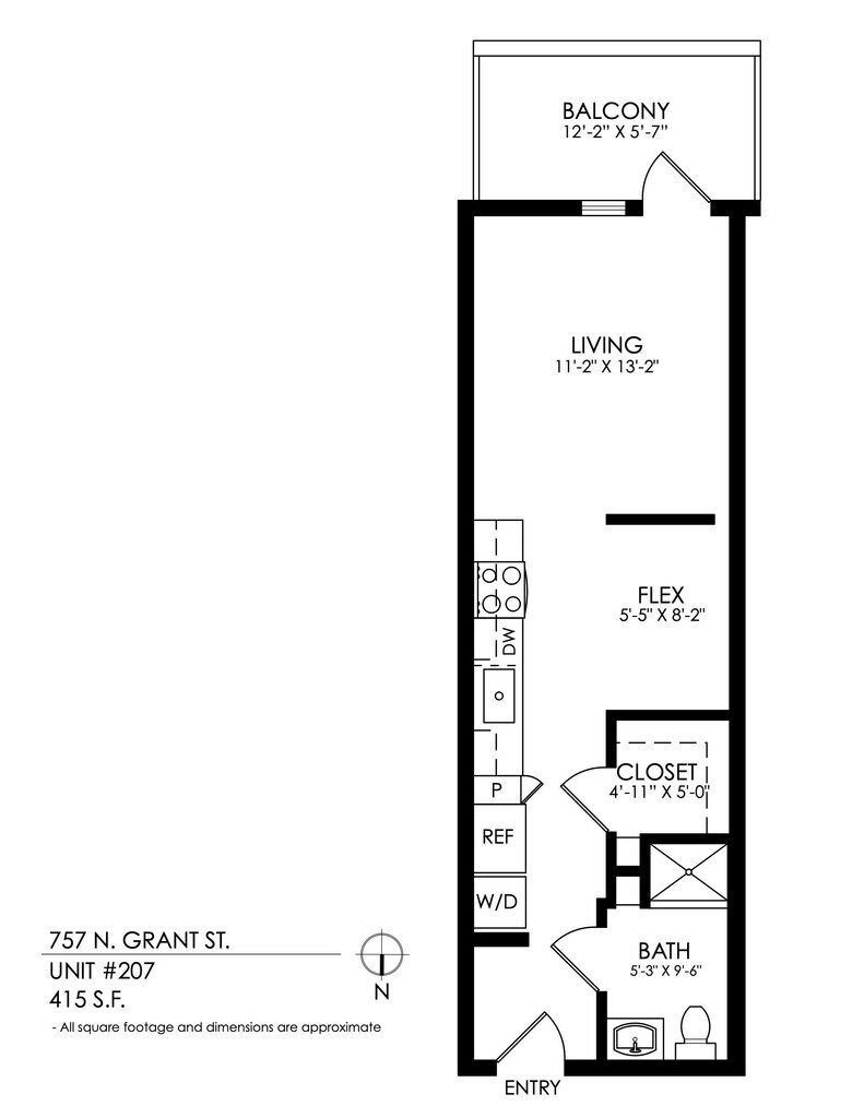 Studio - Plano 2 Los planos son representaciones artísticas. Todas las dimensiones son aproximadas. El producto y las especificaciones reales pueden variar en tamaño o detalle. No todas las características están disponibles en cada vivienda en alquiler. Por favor, consulta con un representante para obtener más detalles.