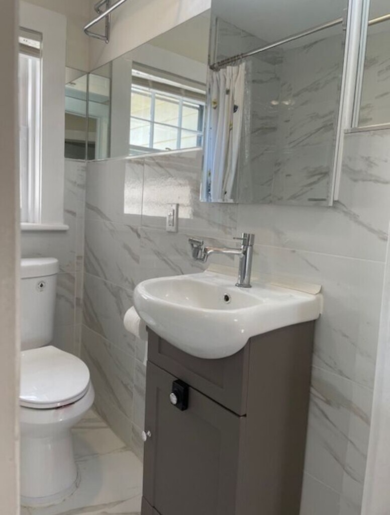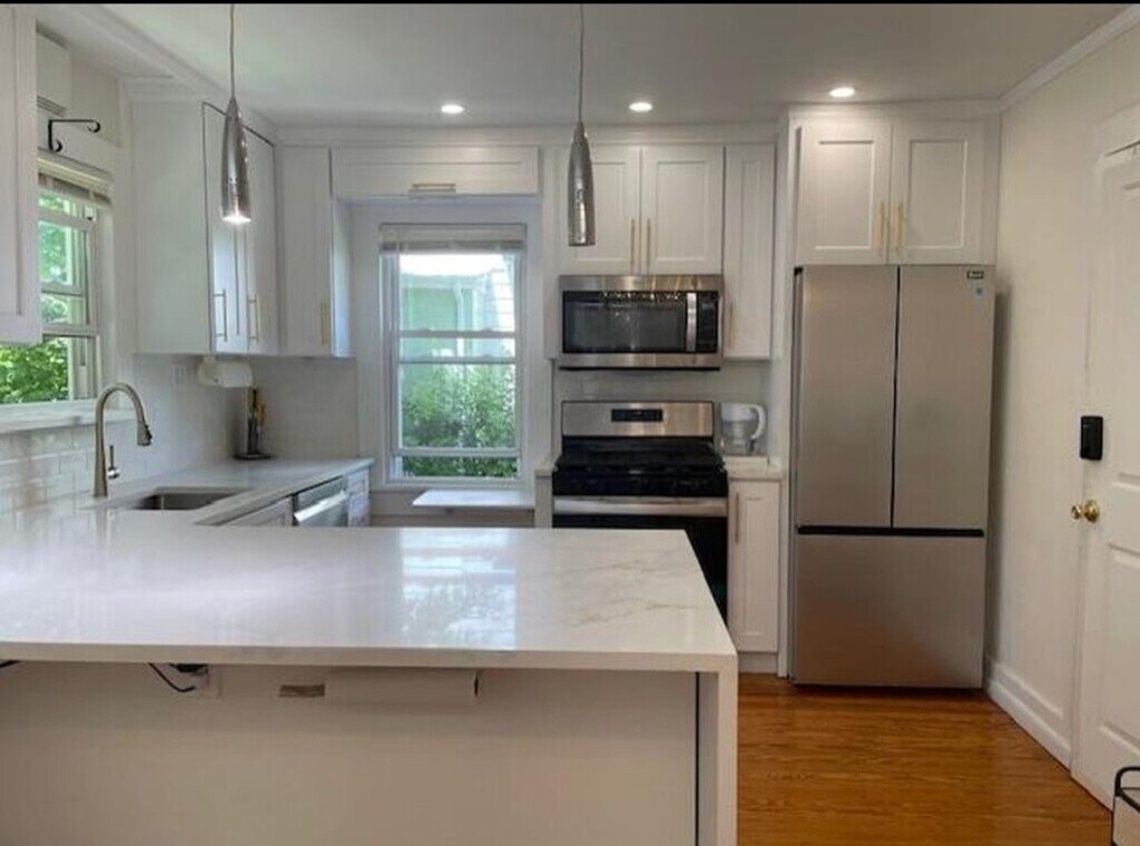 Experience the perfect blend of convenience and modern luxury in this beautifully renovated place, just steps away from Bay St. Train Station. With express train access to Midtown Manhattan in just 30 minutes, and Montclair’s vibrant downtown a short walk away, this home offers the ideal location for urban living. Step inside to discover a bright, open floor plan with elegant hardwood floors throughout. The chef’s kitchen serves as the heart of the home, featuring state-of-the-art appliances, marble countertops, and a sleek breakfast bar—perfect for both casual meals and entertaining. From the kitchen, step out onto the walkout deck, an inviting space for outdoor gatherings or quiet relaxation during warmer months. The living room and master bedroom both come equipped with modern fireplaces, creating a warm and cozy ambiance for your evenings at home. For added convenience, three of the four bedrooms feature high-definition flat-screen TVs with Roku, offering endless entertainment options at your fingertips. Each room is fitted with a newly installed, high-performance mini-split system, allowing you to control air conditioning, heating, and humidity to your personal comfort levels. Additionally, the home includes a high-end washer and dryer on the second floor for your convenience. Landscaping services are included, so you can enjoy the home's beautiful surroundings without the hassle of maintenance. Please note: While there is 2-car parking space available, the garage and basement are not included. Enjoy modern living at its finest in a location that perfectly balances convenience and comfort.