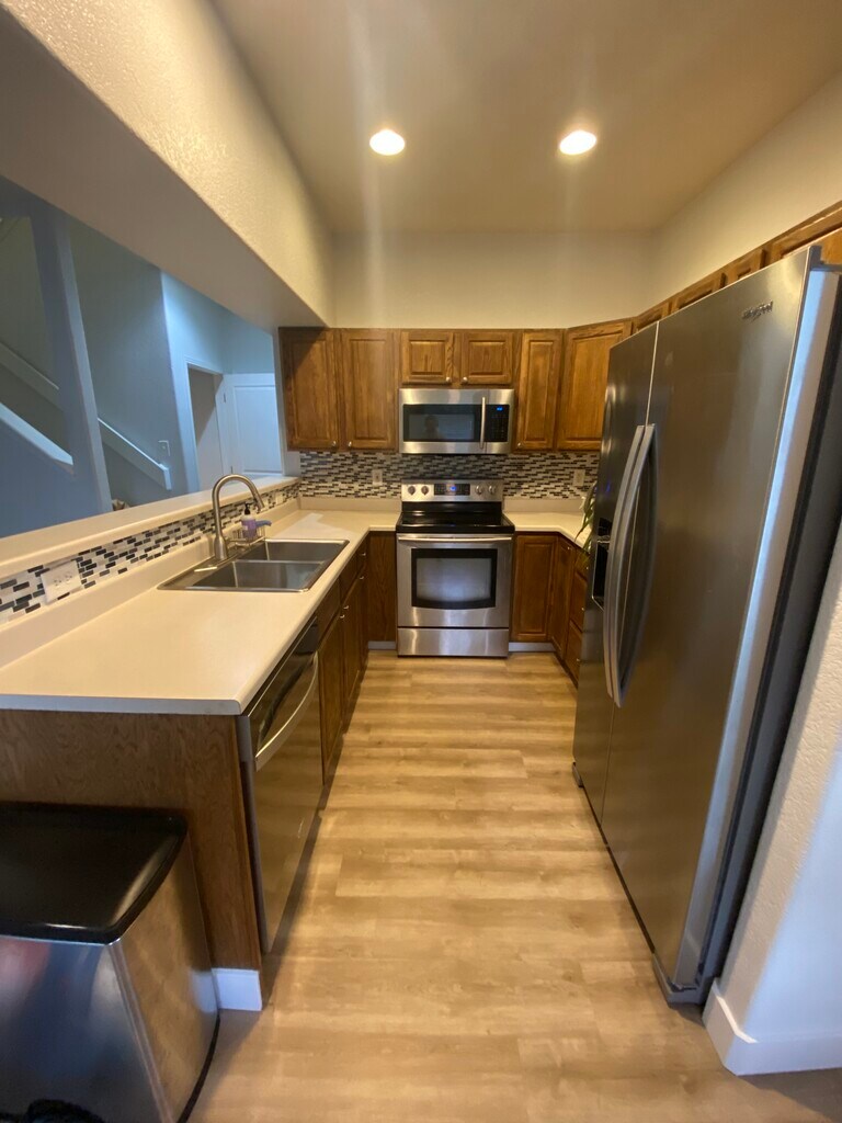 Spacious and well-maintained townhome featuring a fully finished basement with a large closet, perfect for a home office, home gym, guest space, or media room. Recent updates include a newer AC, furnace, water heater, washer/dryer, and dishwasher, ensuring peace of mind and efficiency. Enjoy the brand-new flooring on the main level and a beautifully remodeled primary shower currently underway (as seen in the photos). The home also offers a convenient two-car attached garage. The townhome is conveniently located near several well maintained parks and an abundance of trails. With the Belmar shopping just minutes away, this location has it all! For added value, rent covers water and sewer, garbage and recycling disposal, snow shoveling for accumulations of 3 inches or more, and mowing and landscaping of common areas making for easy, low-maintenance living.