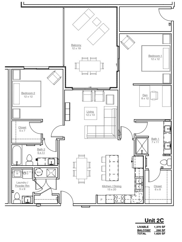 2C - Plano 2C - 3D Tour Unidad de apartamento: 3001Modelo de apartamento: 2C$2,5002 Dormitorios, 2.5 Baños, 1370 sq ftDisponible May 22, 20263 Dormitorios