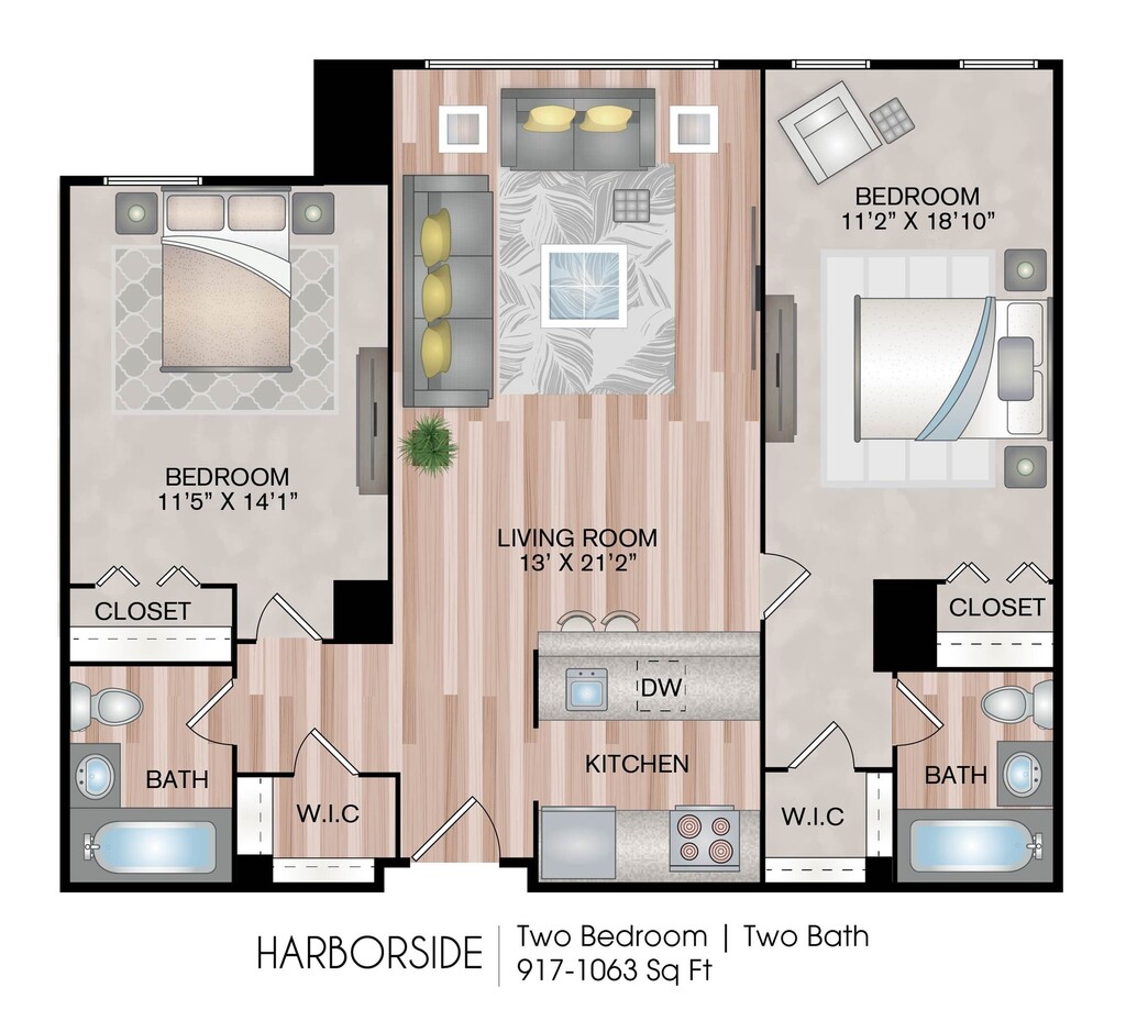Harborside - Plano Unidad de apartamento: 01-0614Modelo de apartamento: HarborsideDesde $4,9892 Dormitorios, 2 Baños, 1016 sq ftDisponible Ahora