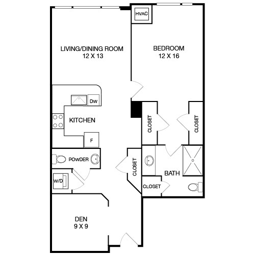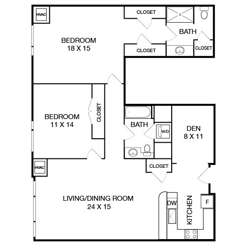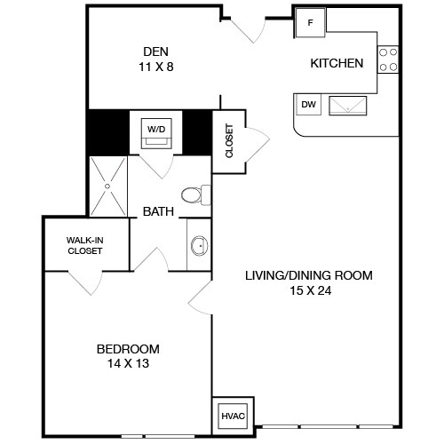 Modelo de apartamento: Snyder with DenLlame para Precios1 Dormitorio, 1 Baño, 975 sq ftNo Disponible![]()