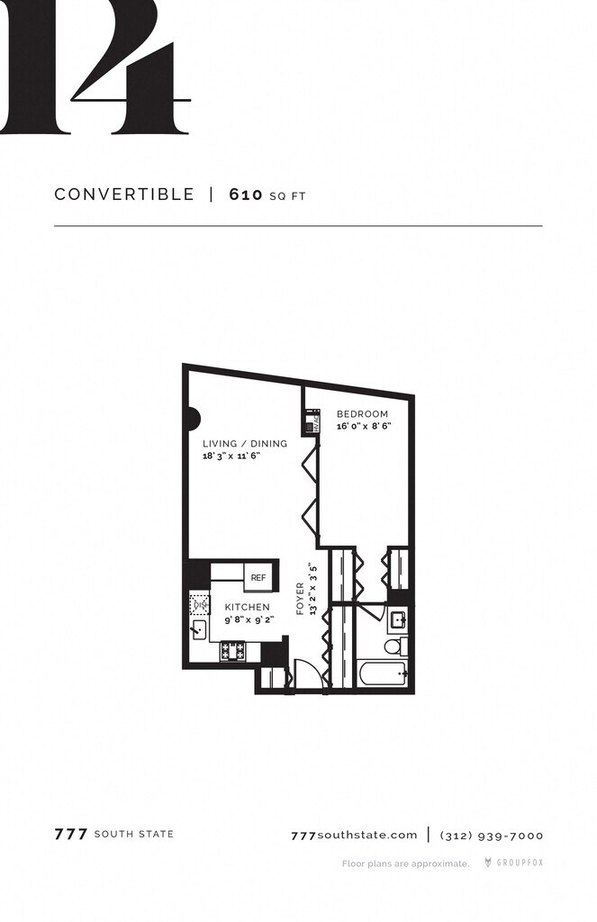 Convertible Studio - Plano 5 Unidad de apartamento: 7770514Modelo de apartamento: Convertible Studio$1,755Estudio, 1 Baño, 610 sq ftDisponible Ahora![]()