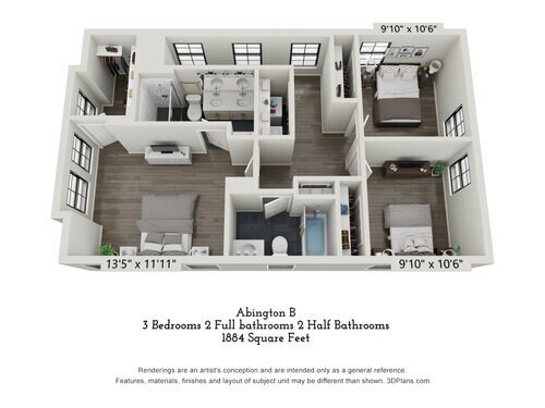 Modelo de apartamento: Abington C$3,3003 Dormitorios, 3 Baños, 1884 sq ftNo DisponibleLos planos de la planta son una interpretación artística. Todas las dimensiones son aproximadas. Los tamaños o el detalle del producto real y sus especificaciones pueden variar. No todas las características están disponibles en todos los hogares para rentar. Los precios y la disponibilidad están sujetos a cambios. El alquiler que se muestra es mensual. Se pueden aplicar ciertos cargos, por ejemplo, entrega de paquetes, recolección de basura, agua, servicios, etc. Depositos varian. Consulta a un representante para conocer detalles.